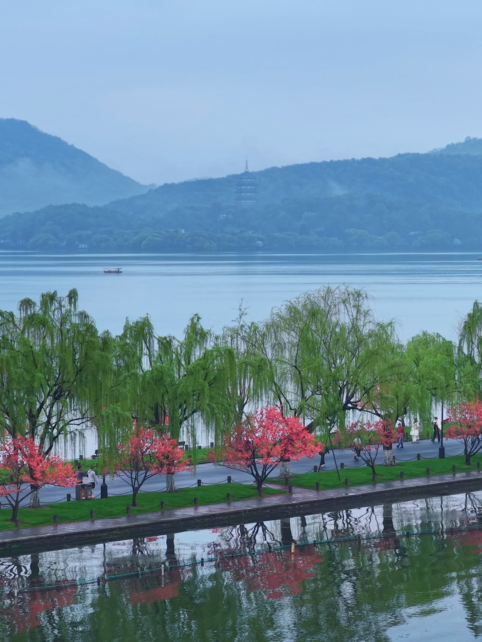 雨后清晨的西湖,像刚被洗过的江南梦,桃花灼灼,柳丝含烟,桃红柳绿间,尽是水墨江南,春的温柔,在这里体现的淋漓尽致。