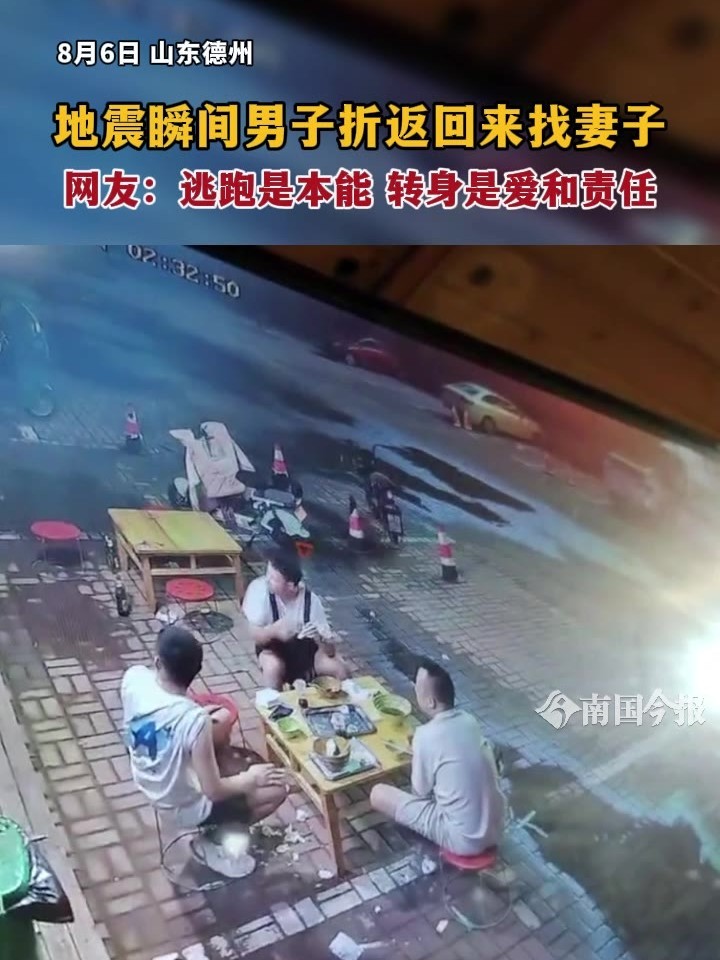地震瞬间男子折返回来找妻子!网友:逃跑是本能,转身是爱和责任