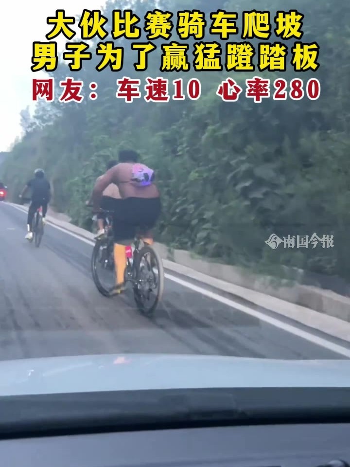 大伙比赛骑车爬坡,男子为了赢猛蹬踏板!网友:车速10 心率280