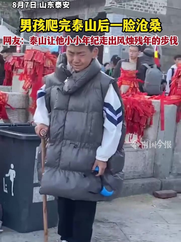 男孩爬完泰山后一脸沧桑,网友:泰山让他小小年纪走出风烛残年的步伐