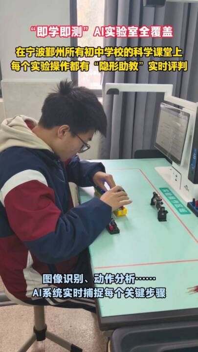 做完实验,AI当场给你“打分”,宁波市鄞州区初中学校实现AI实验室全覆盖,让科技真正为教育赋能。(供稿:鄞州区教育局、现代金报)