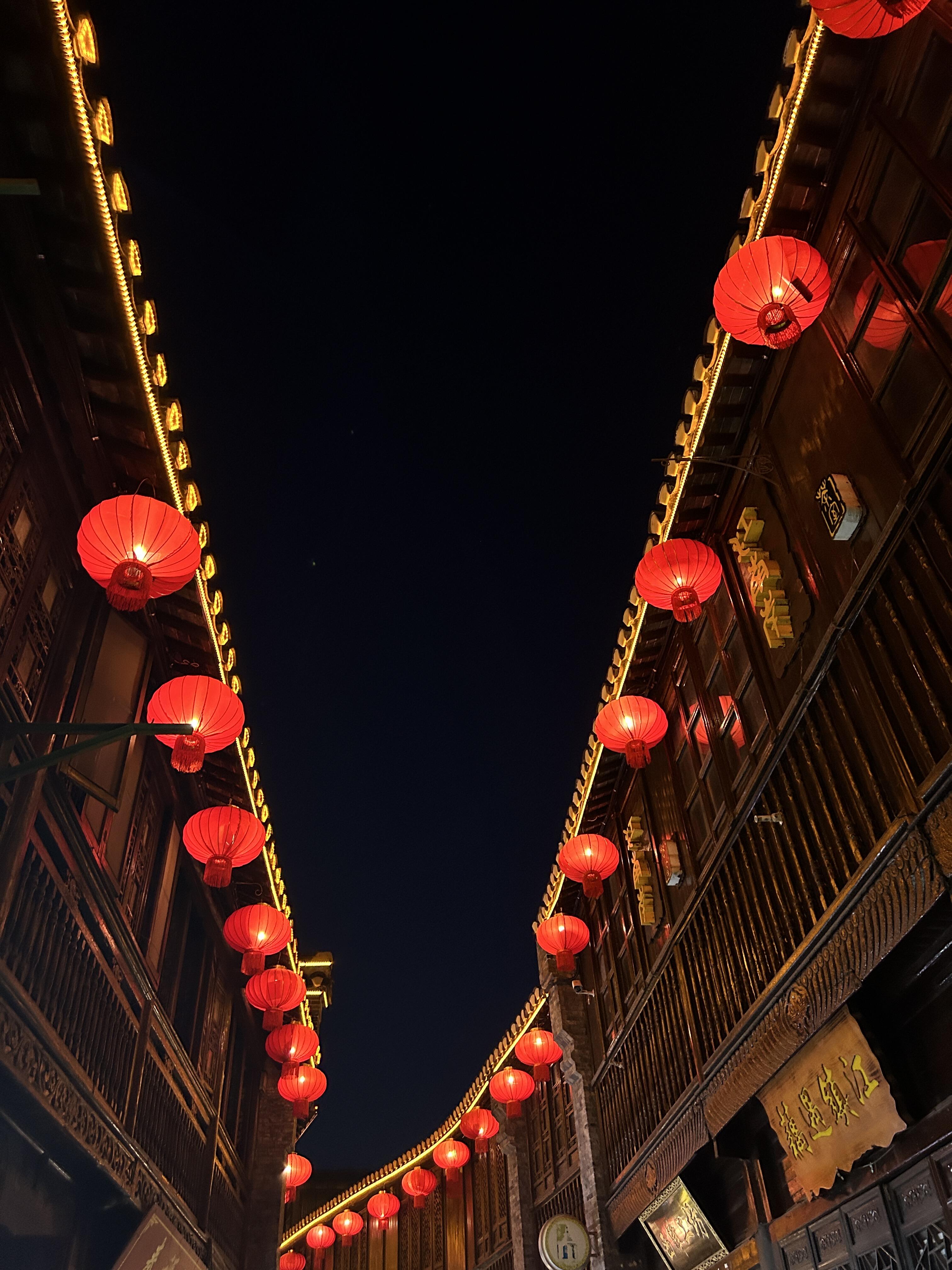 夜游西津渡 西津渡的夜,是古旧的,又夹些微明的光色。青石板路在脚下蜿蜒,被岁月磨得光滑如鉴,踏上去竟有些滑腻。两旁木结构的铺面紧闭着,暗红色的灯笼在檐下摇曳,照出些绰绰的人影,又即刻被夜色吞没。 我爱这镇江的历史,爱它不张扬却自有风骨,爱它在长江边上静静地讲述着千年往事的样子。 游人三三两两,多是闲散的,脚步也轻,仿佛怕惊动了什么。偶有笑语从民宿里漏出,旋即又被风卷去。那风是江上来的,带着水气和凉意,穿过古街老巷,拂过爬满藤蔓的砖墙,竟将白日的暑热驱散得干干净净。 脚下的西津古渡,曾是千帆竞发之地,而今只余石阶数级,斜入水中。石缝间仿佛还嵌着往昔的喧嚣与别离,在夜色中幽幽地散发着历史的芬芳。 街中一处石塔,“昭关”二字依稀可辨,过往行人皆从塔下穿过,据说是元代的。塔身石雕被时光啃噬得模糊了,倒更显得古意盎然,它就这样默然注视着历史的变迁。 夜色渐深,灯笼愈发明亮起来。光影在青石板上流淌,望西津渡,只见一片朦胧灯光,浮在长江之畔。 我爱这夜色中的西津渡,美得让人不想离开。