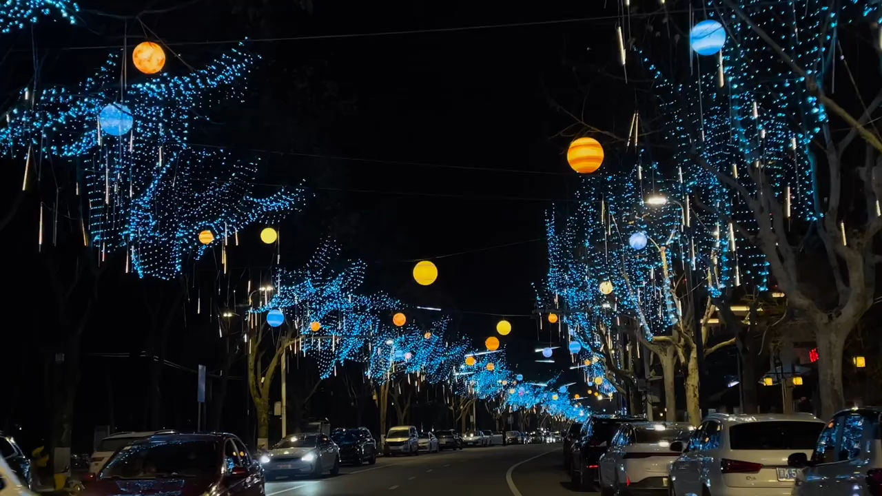 行星悬于枝头 流星划破暮色 把宇宙搬进夜色 一步一景皆是浪漫星河 美哭🌃