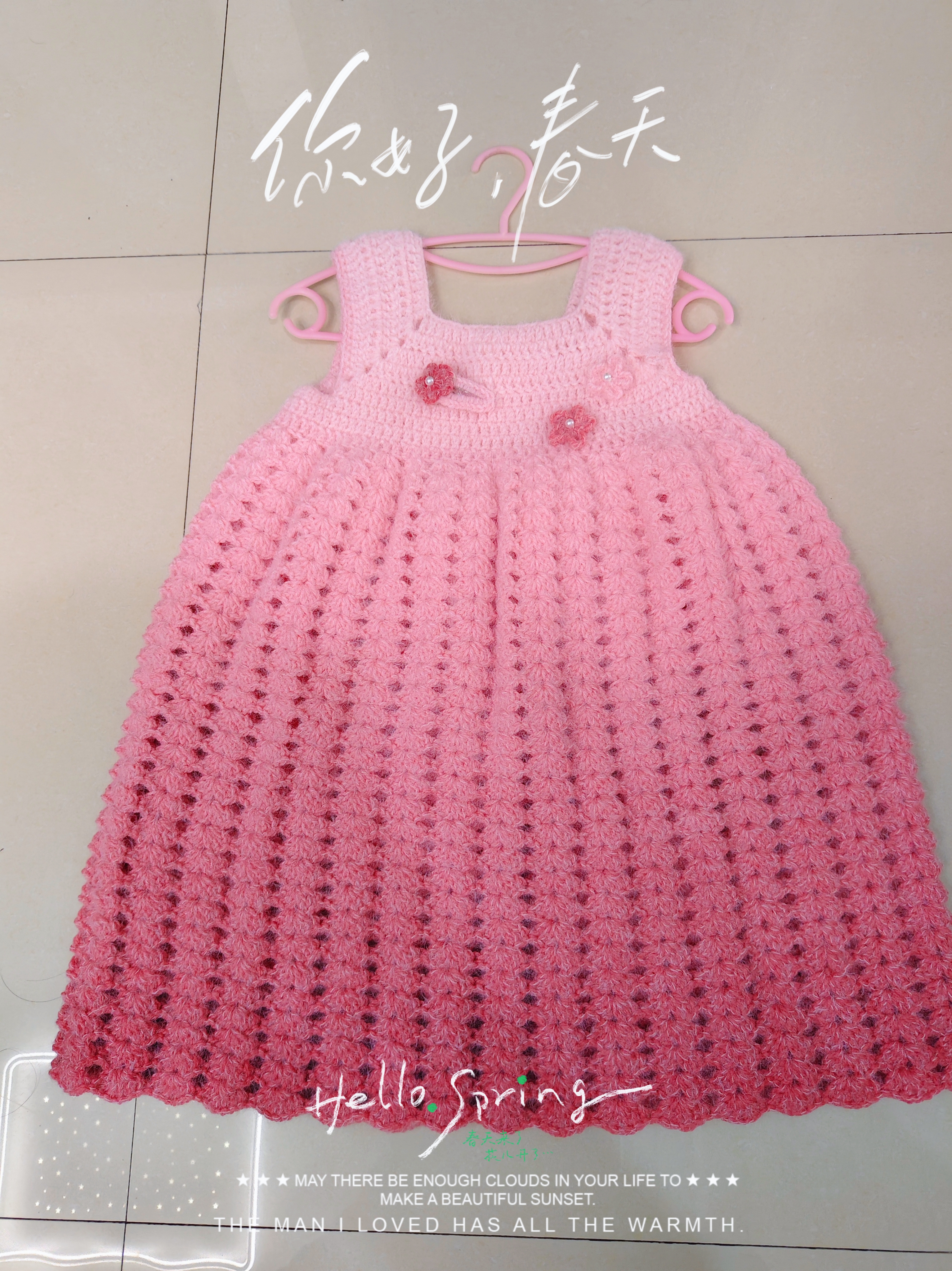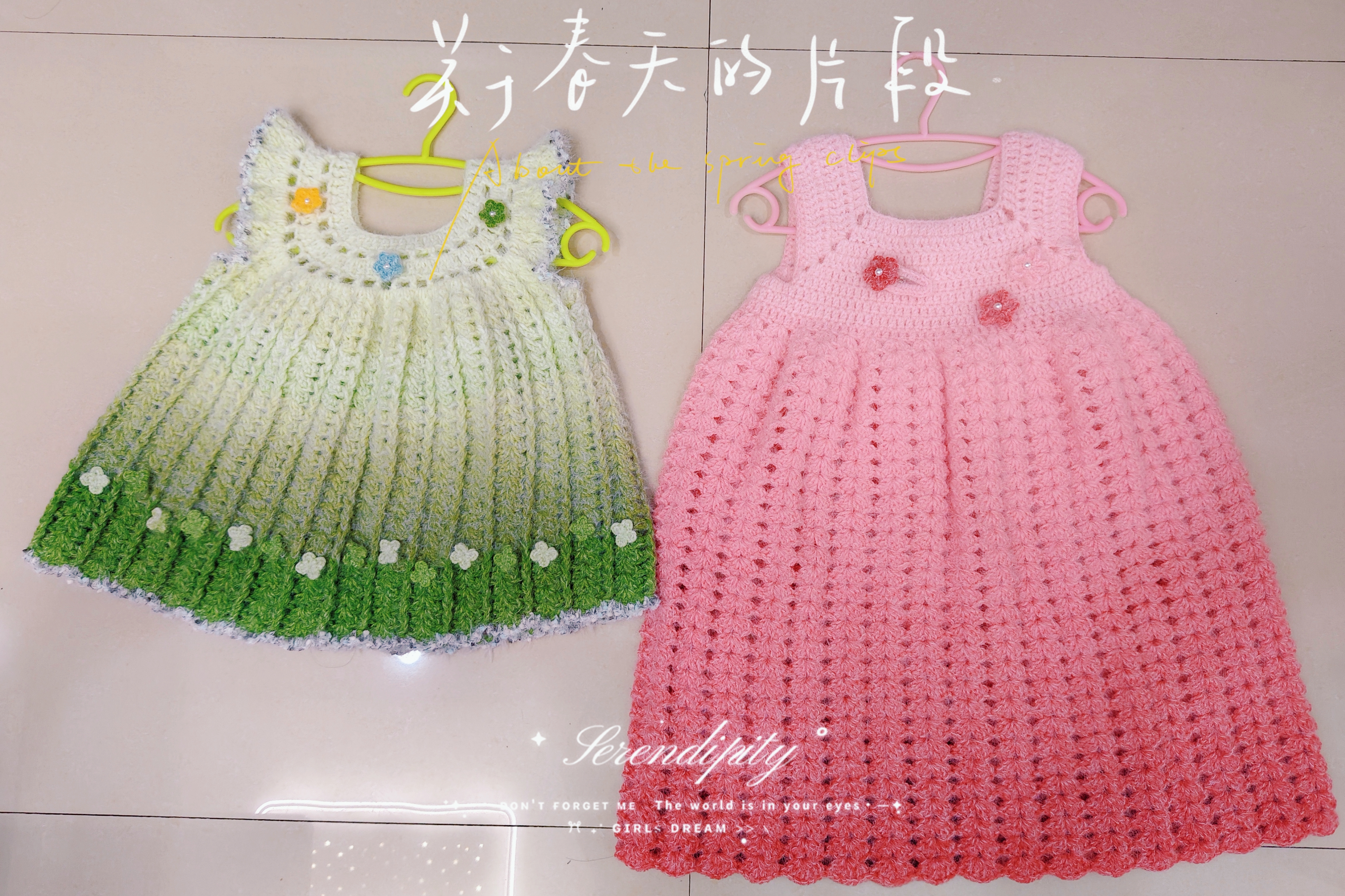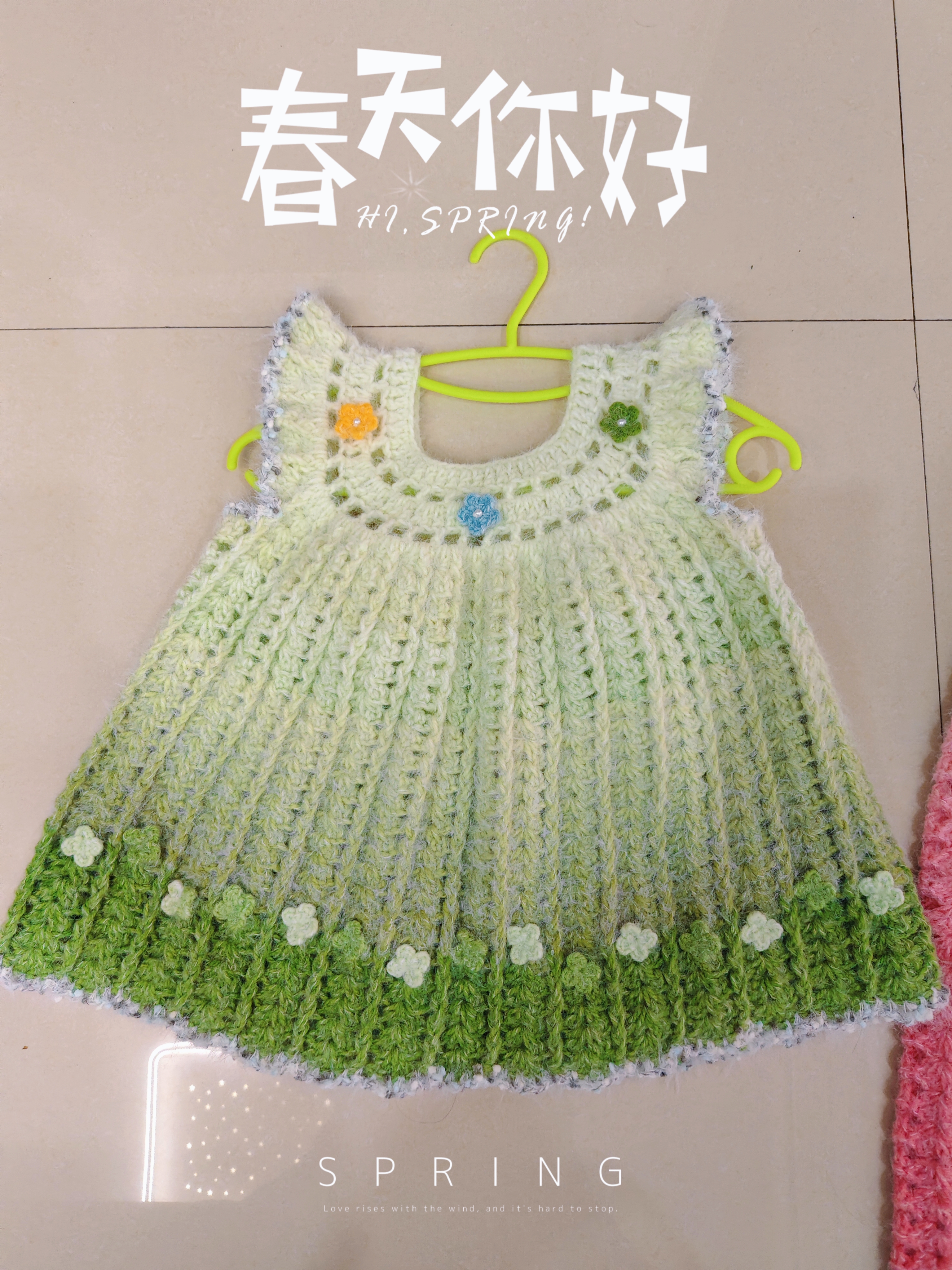 钩针轻舞,粉绿渐变小裙在春光里摇曳~毛茸茸的花边、镂空扇摆,连瓷砖地面都温柔了。Hello Spring,一针一线都是致春天的来信 🌸