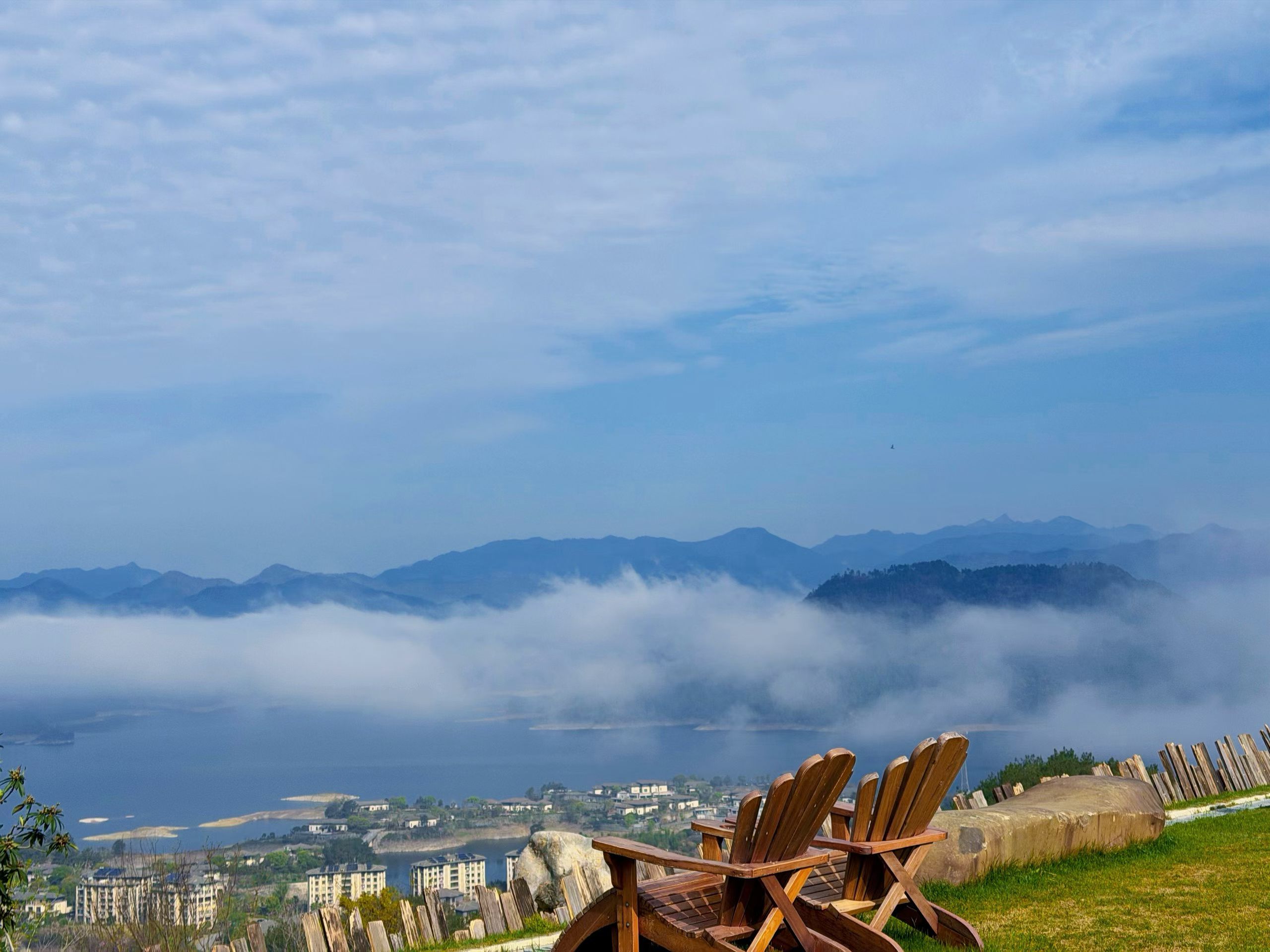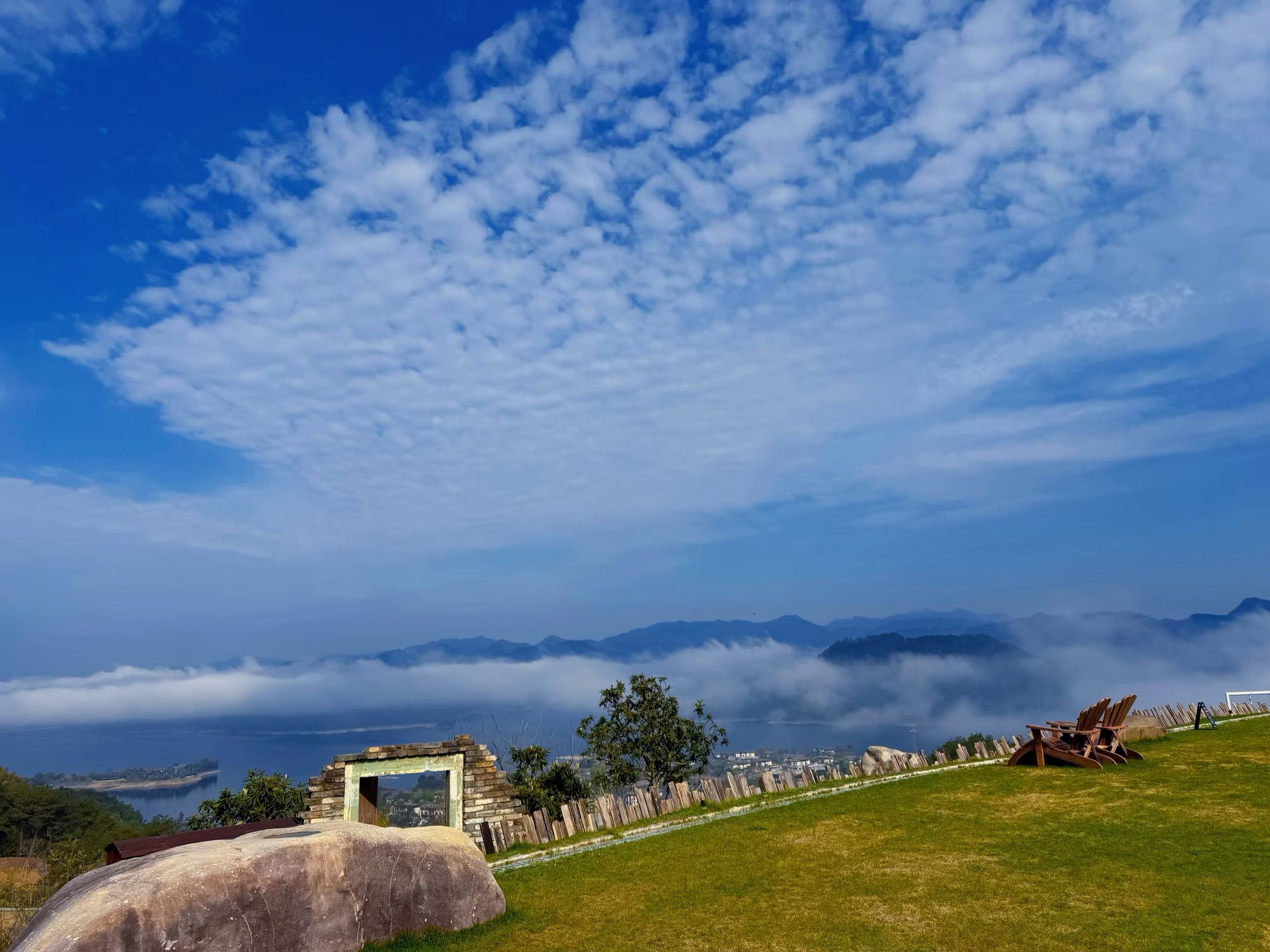 千岛湖蜜境藏云海,巨石草坪+木椅观景台,随手一拍就是MELLOW风大片~