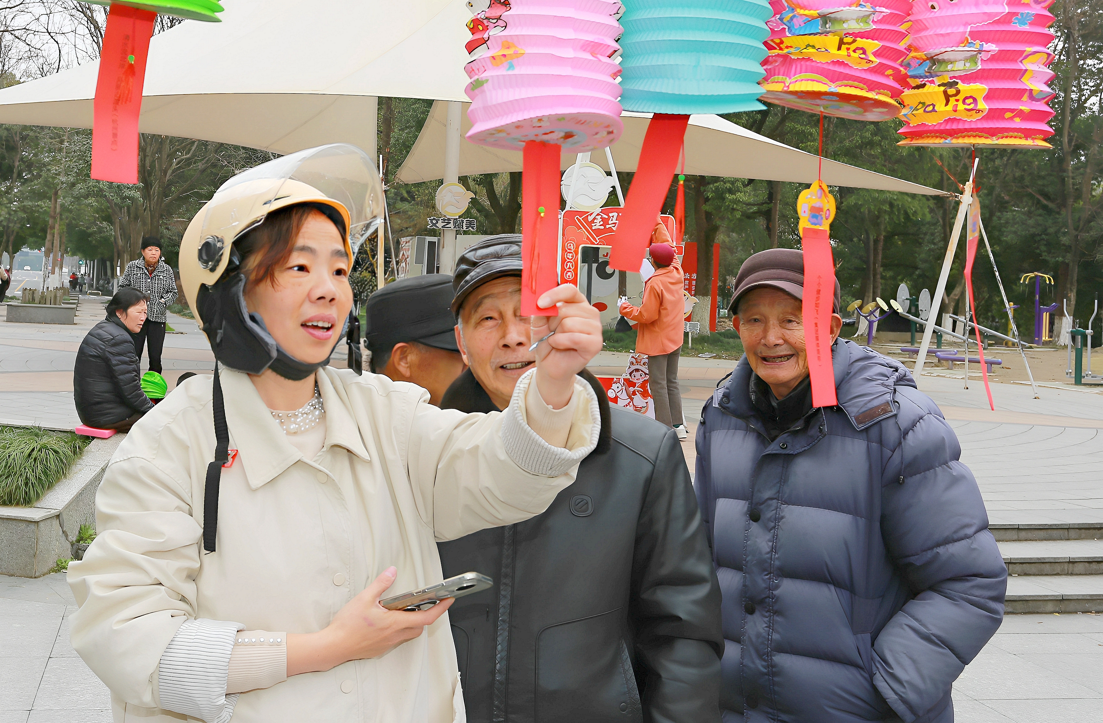 七彩灯谜闹元宵 景安社区乐融融 杭州市拱墅区石桥街道景安社区在莲趣花广场开展“庆元宵·猜灯谜”主题活动,喜迎元宵佳节。现场张灯结彩,红灯笼挂满谜面,清廉、法治、趣味生活三类谜题兼具知识性与趣味性。居民踊跃猜谜,猜中即可领取汤圆、抽纸等礼品,欢声笑语不断。志愿者设发放点,为居民、环卫工人和快递小哥送上热乎汤圆。此次活动以民俗为载体,融入清廉与法治宣传,丰富居民文化生活,拉近邻里距离,营造出欢乐祥和的社区氛围。