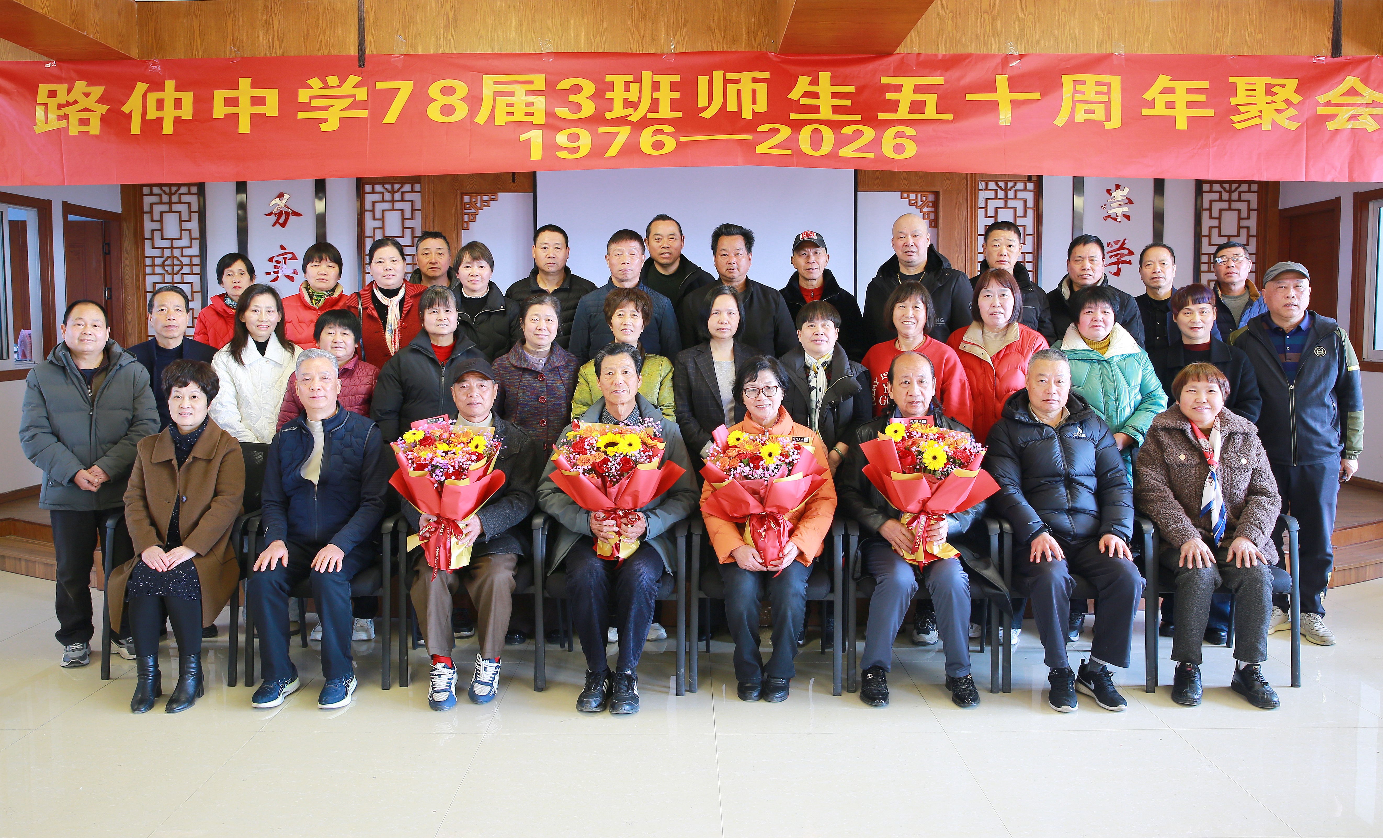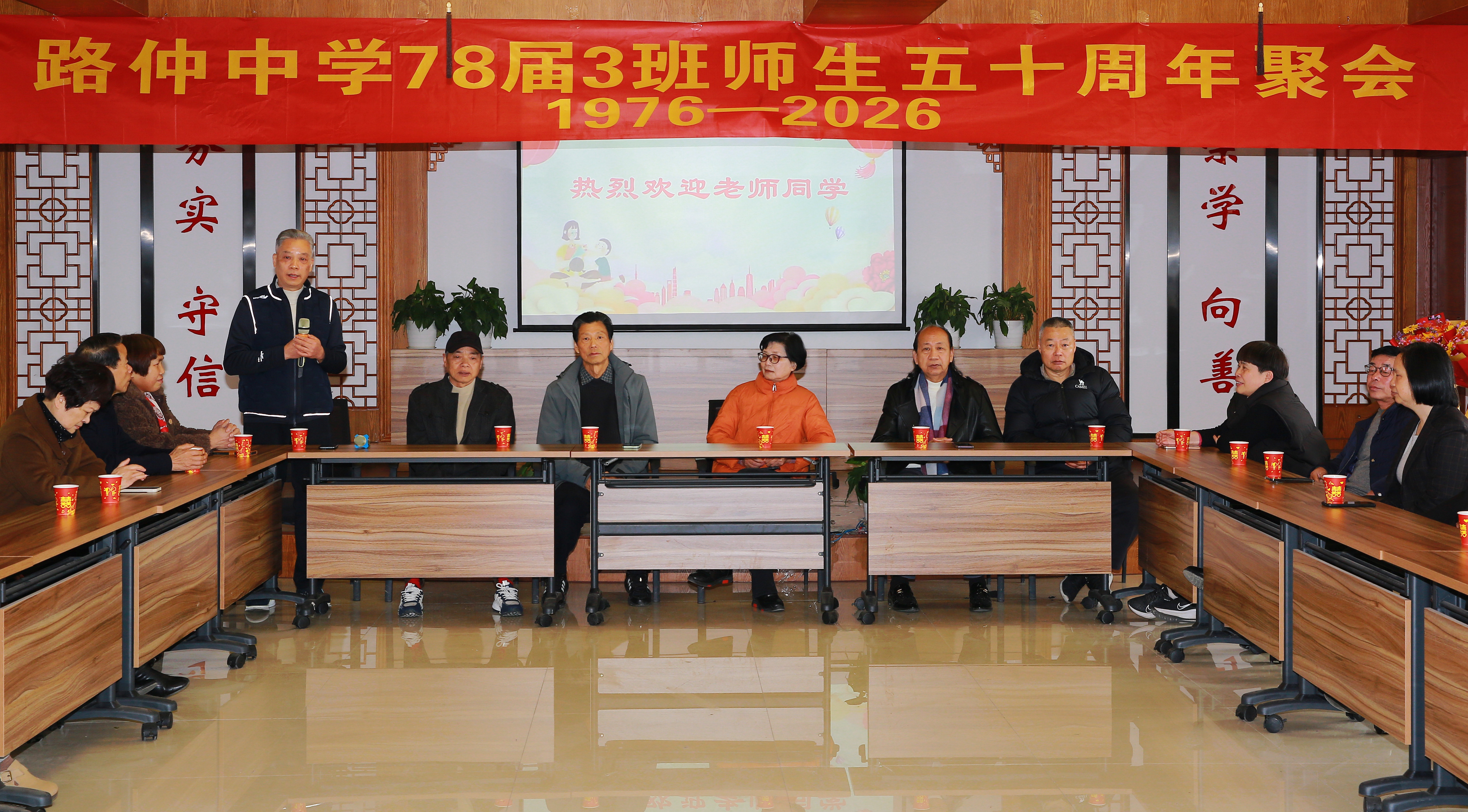 路仲中学78届3班五十年师生聚首 金马献瑞,岁月流芳。2026年3月8日,路仲中学78届3班举办毕业五十周年同学会,半世纪一遇的师生大团圆温情落幕。 现场横幅高悬,久违的笑脸齐聚。师生们共忆青葱岁月,畅谈当下生活,真挚的师生情、同学情在欢声笑语中浓情流淌。 祝愿全体师生龙马精神、生活顺遂,半世纪的珍贵情谊永远温暖相伴,地久天长!
