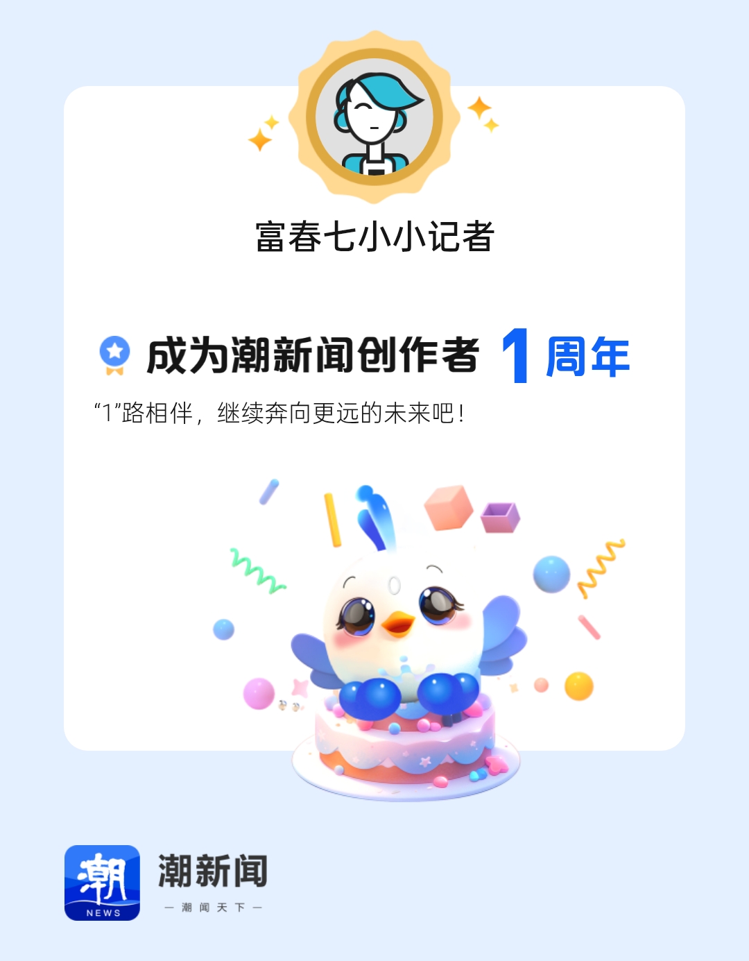 今天是我加入潮新闻创作者大家庭1周年的日子,快来我的主页看看这一年的创作成绩单吧!