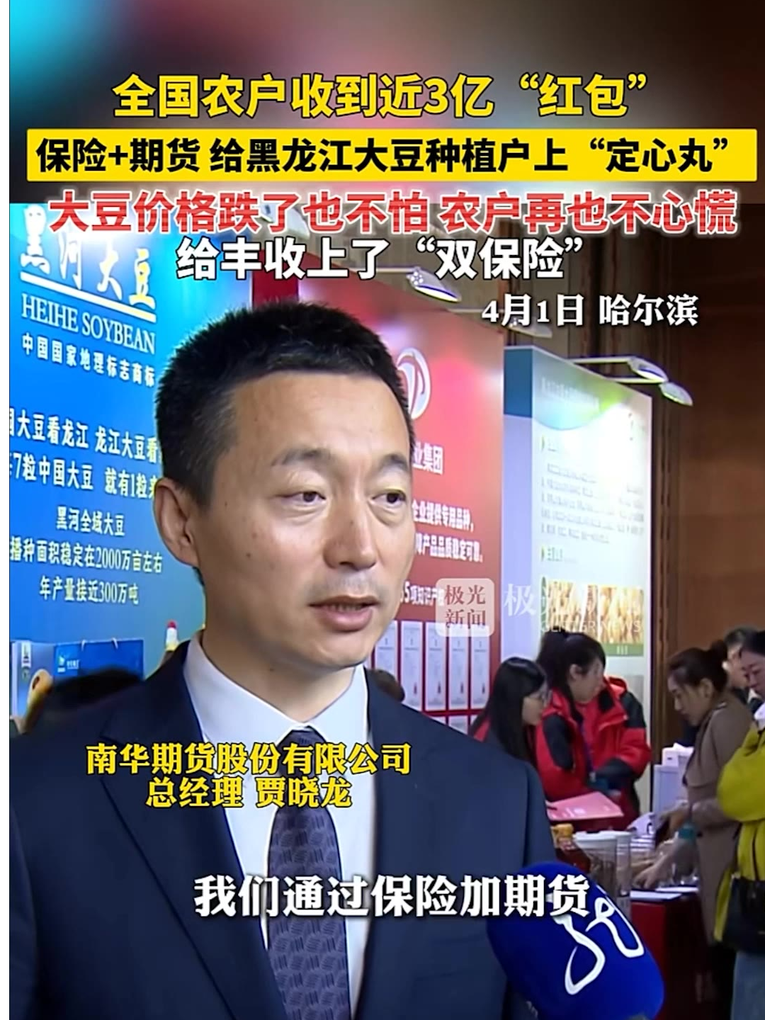 【极光新闻】全国农户收到近3亿"红包”,保险+期货,给黑龙江大豆种植户上"定心丸”,大豆价格跌了也不怕,农户再也不心慌,给丰收上了“双保险” #热点#新闻 #财经#保险 #大豆