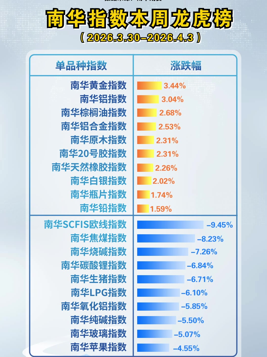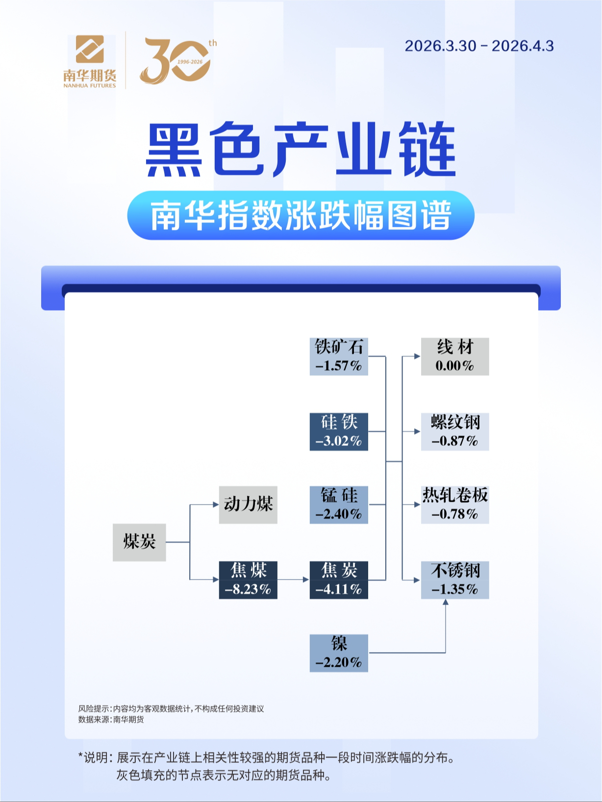 南华指数产业链涨跌幅图谱(2026.3.30-2026.4.3 )#指数 #行情 #金融