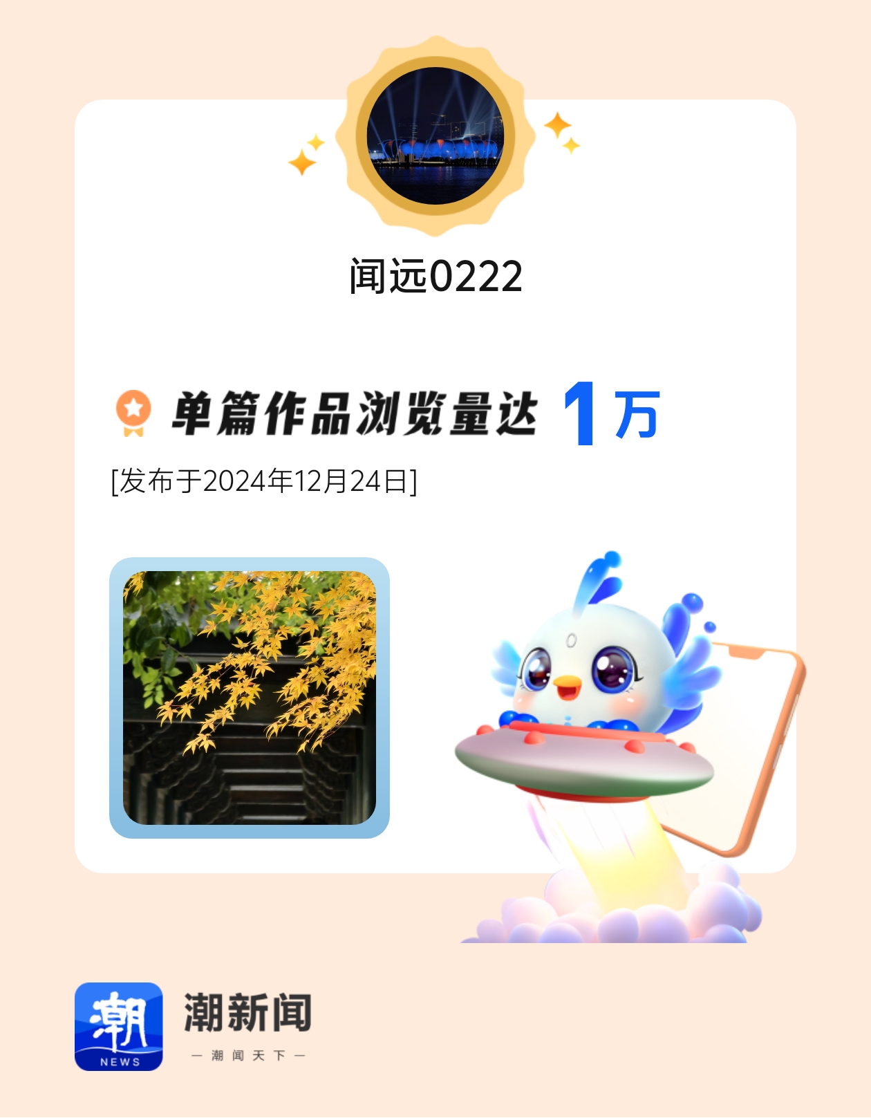 我在潮新闻发表的单篇作品浏览量达到1万!
