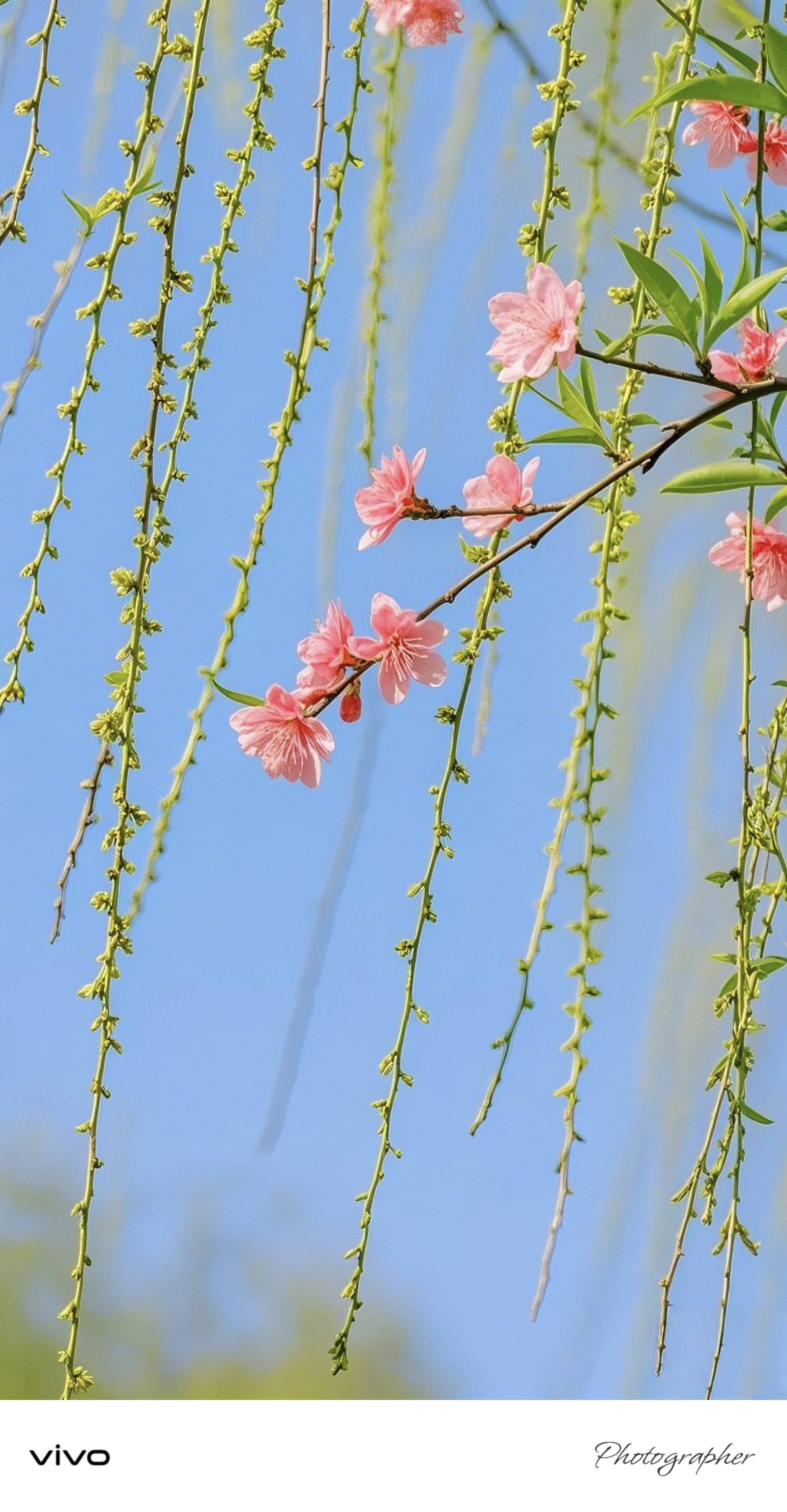 《春之交响》 春日的蓝天下, 桃花与柳丝共舞。 粉嫩的桃花, 如羞涩少女的笑靥, 在枝头悄然绽放。 那细腻的花瓣, 藏着春天的温柔密语 。 细长的柳丝, 似绿色的丝绦, 随风轻摆。 芽苞点点, 是春天写下的诗行 。 它们相互交织, 奏响春的旋律。 蓝天是无垠的幕布, 衬托这蓬勃的生机。 每一缕阳光, 都为这美景添彩。 这是大自然的馈赠, 是生命与希望的交响 。