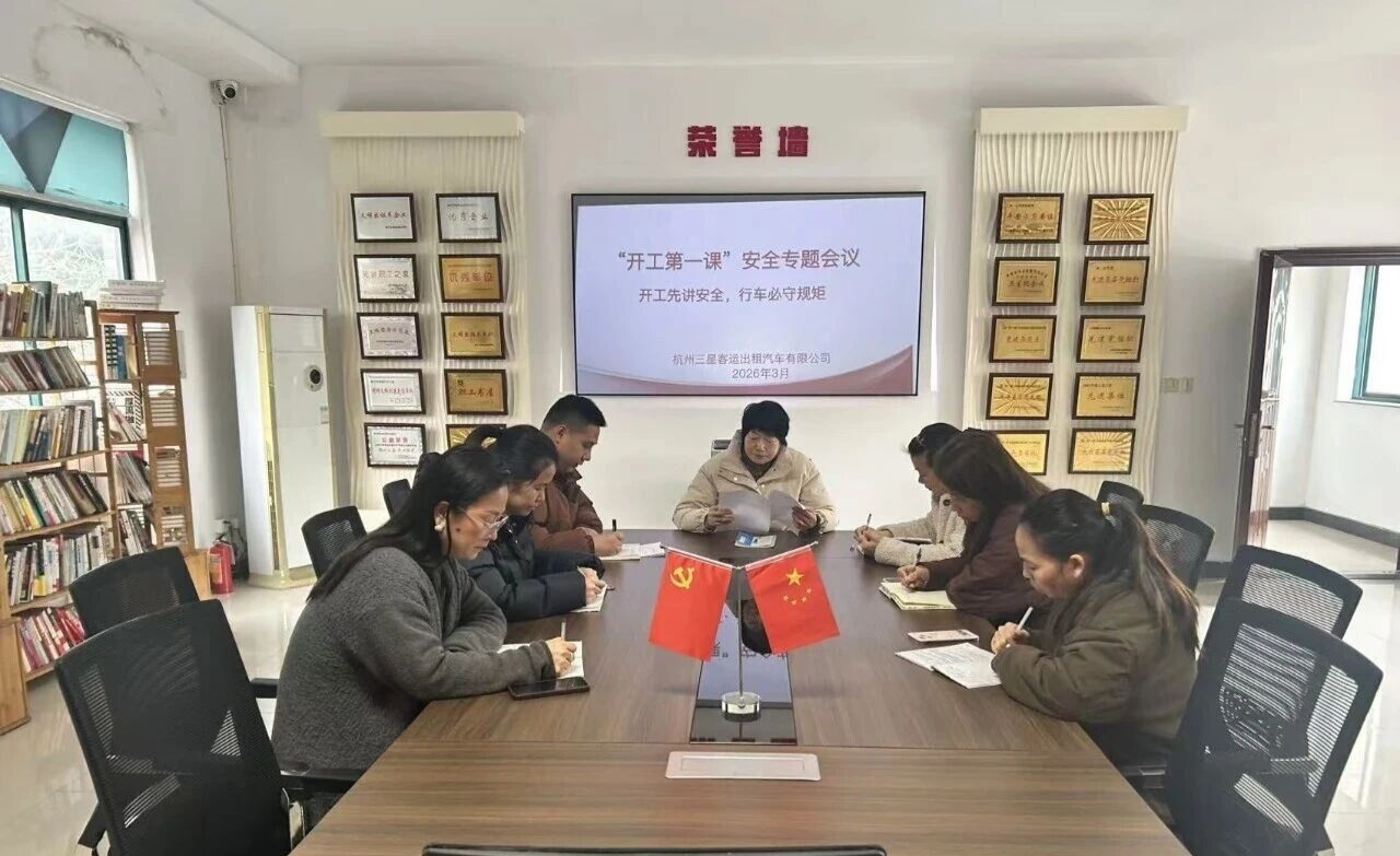 三星客运召开“开工第一课”安全专题会议 为深入贯彻市交通运输行业关于节后复工复产安全生产工作部署,强化全员安全意识,筑牢安全生产防线,3月4日下午,杭州三星客运出租汽车有限公司召开“开工第一课”安全专题会议。 公司负责人、安全生产第一责任人作动员讲话,强调“开工第一课”既是政策要求,更是企业安全发展的内在需要。全体员工要迅速收心归位,摒弃“节后松懈、麻痹侥幸”心理,把“安全第一、生命至上”理念贯穿营运全过程。 接着,她围绕责任落实、风险防控、规范运营、应急处置四大核心作出部署:一是压实安全主体责任,健全从管理层到驾驶员的全链条责任体系,做到人人有责、层层压实、闭环管理。二是严把车辆技术关,全面开展营运车辆“复工体检”,重点检查制动、转向、轮胎、灯光、消防器材、GPS监控、安全带等关键设施,不合格车辆一律停运整改,坚决杜绝“带病上路”。三是严守驾驶行为红线,严禁超速、闯红灯、强行变道、疲劳驾驶、酒驾等;严格执行休息制度,连续营运不超过4小时;礼让斑马线、规范使用灯光、文明行车,展现杭州出租车文明窗口形象。四是强化重点区域管控,严格遵守杭州东站、萧山机场等重点场站营运秩序,按规定区域候客、上客、下客,严禁站外揽客、议价、拒载等违规行为。五是提升应急处置能力,完善突发事件应急预案,熟练掌握火情、交通事故、乘客突发疾病等场景处置流程,确保快速响应、科学处置。六是提升服务水平,坚持合规营运,加强驾驶员安全教育与技能培训,做到车容整洁、服务规范、用语文明,以安全保运营、以服务树品牌。 随后,安全部对复工复产安全检查、从业人员资质复核、培训考核等工作作出具体安排。全体员工现场签订《2026年度安全管理目标责任书》,把安全责任层层传导至每一个岗位,确保责任落实横向到边、纵向到底。 会议强调,新的一年我们必须以“时时放心不下”的责任感抓安全、保稳定、优服务。全体人员要以本次“开工第一课”为新起点,迅速进入工作状态,把安全责任记在心上、扛在肩上、落在车上,全力防范各类安全风险,确保公司安全生产形势持续稳定,为市民乘客提供更安全、更便捷、更舒心的出行服务,为杭州建设高水平交通强市贡献力量。