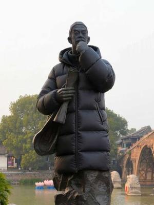“天冷了注意保暖”——来自塘栖古镇铜像的关心