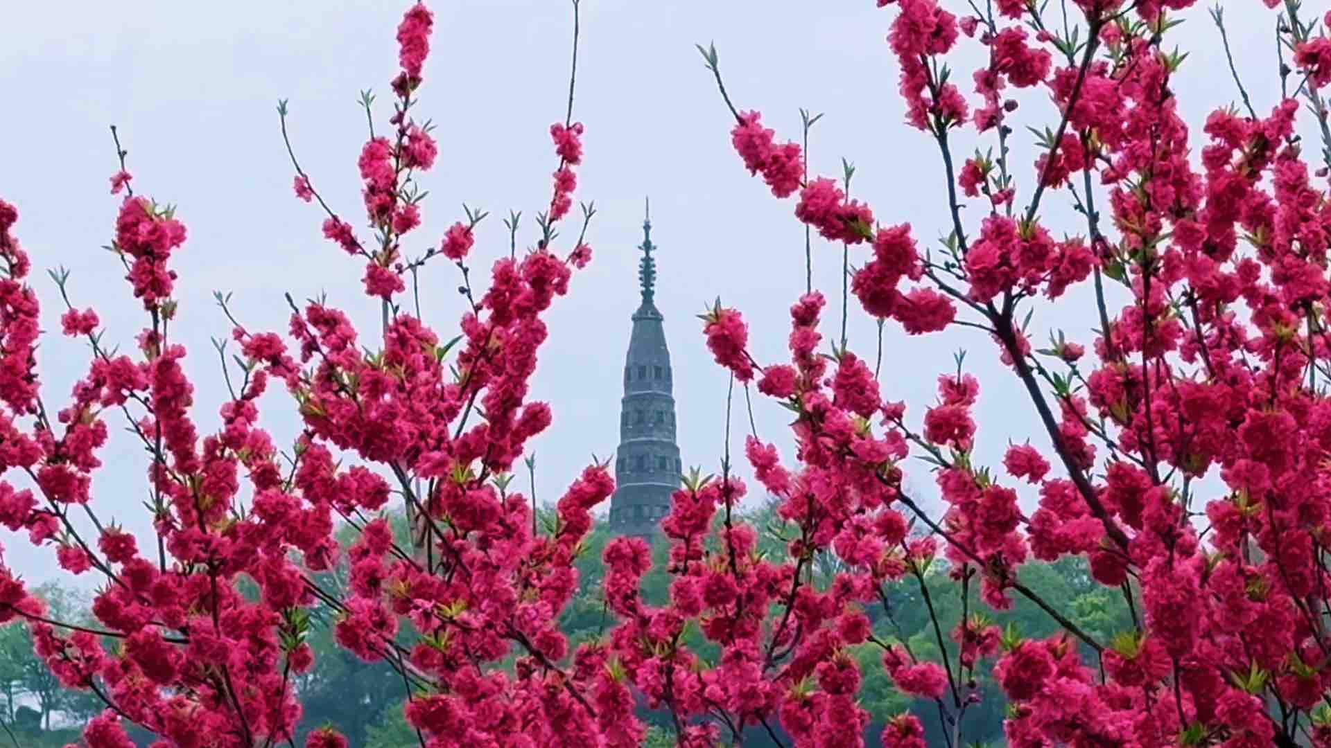 春天的西湖白堤,一涧桃花一涧柳,半湖春色半湖柔。