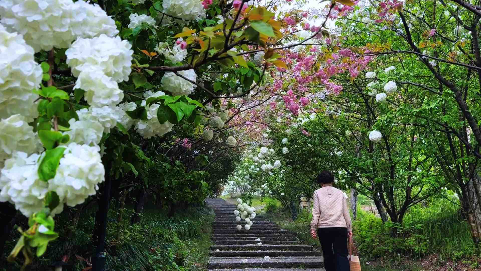 湘湖玛雅岛,绣球花盛开。