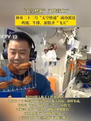 “太空烤箱”又能营业了,神舟二十二号“太空快递”成功派送,鸡翅、牛排、蛋糕齐“飞天”