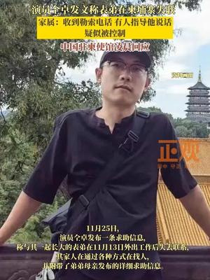 演员仝卓发文称表弟在柬埔寨失联,家属:收到勒索电话,有人指导他说话,疑似被控制