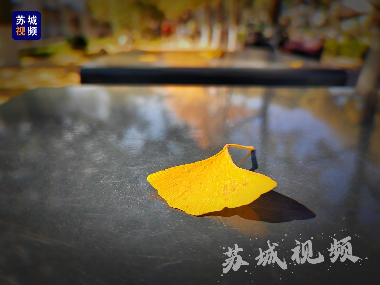 苏州古城区一条街道秋天仿佛穿上“黄金甲”