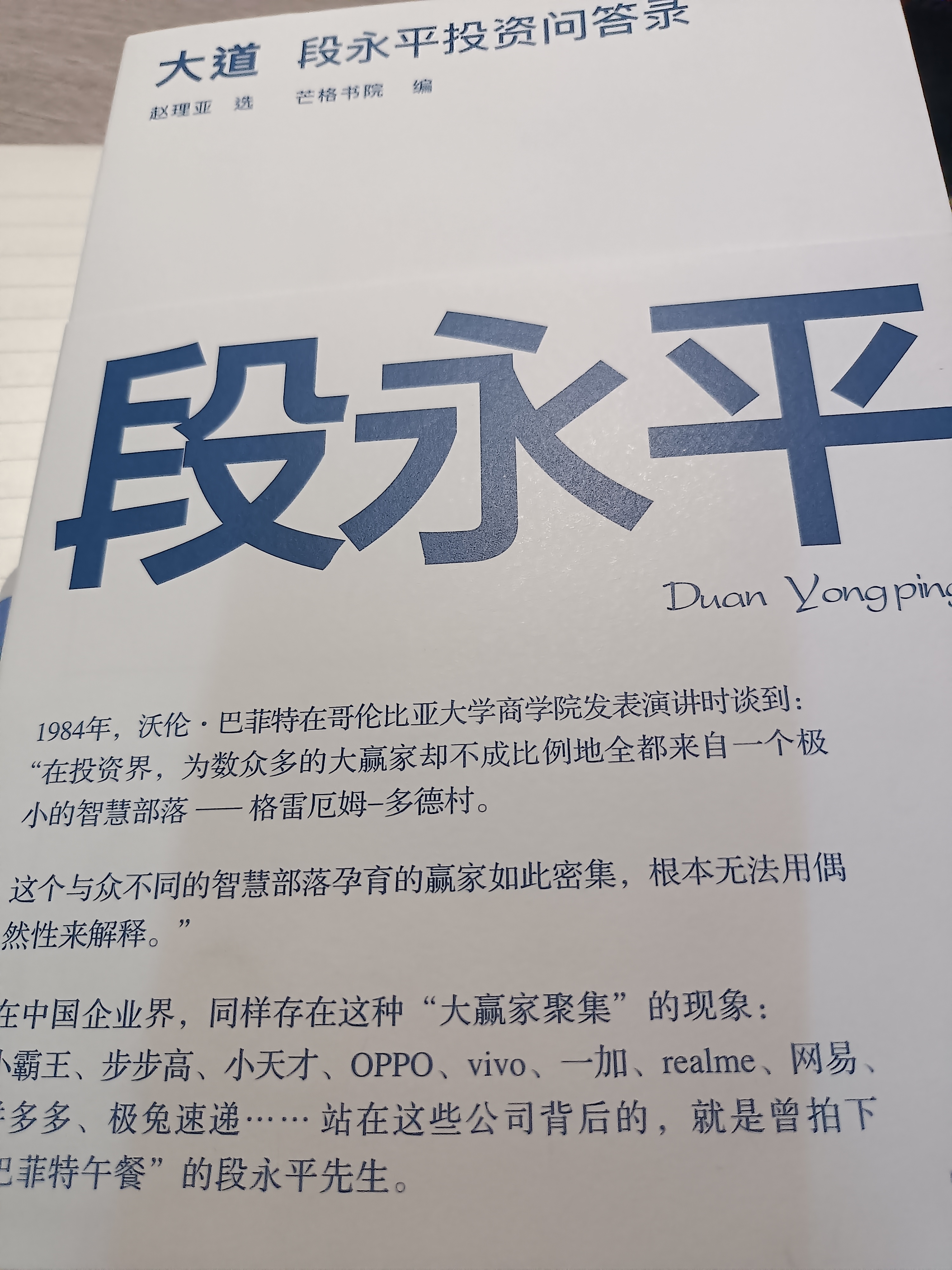 《段永平投资问答录》 发现无论是运营、理财还是生活,很多道理都是相通的,有时想想真的很神奇。