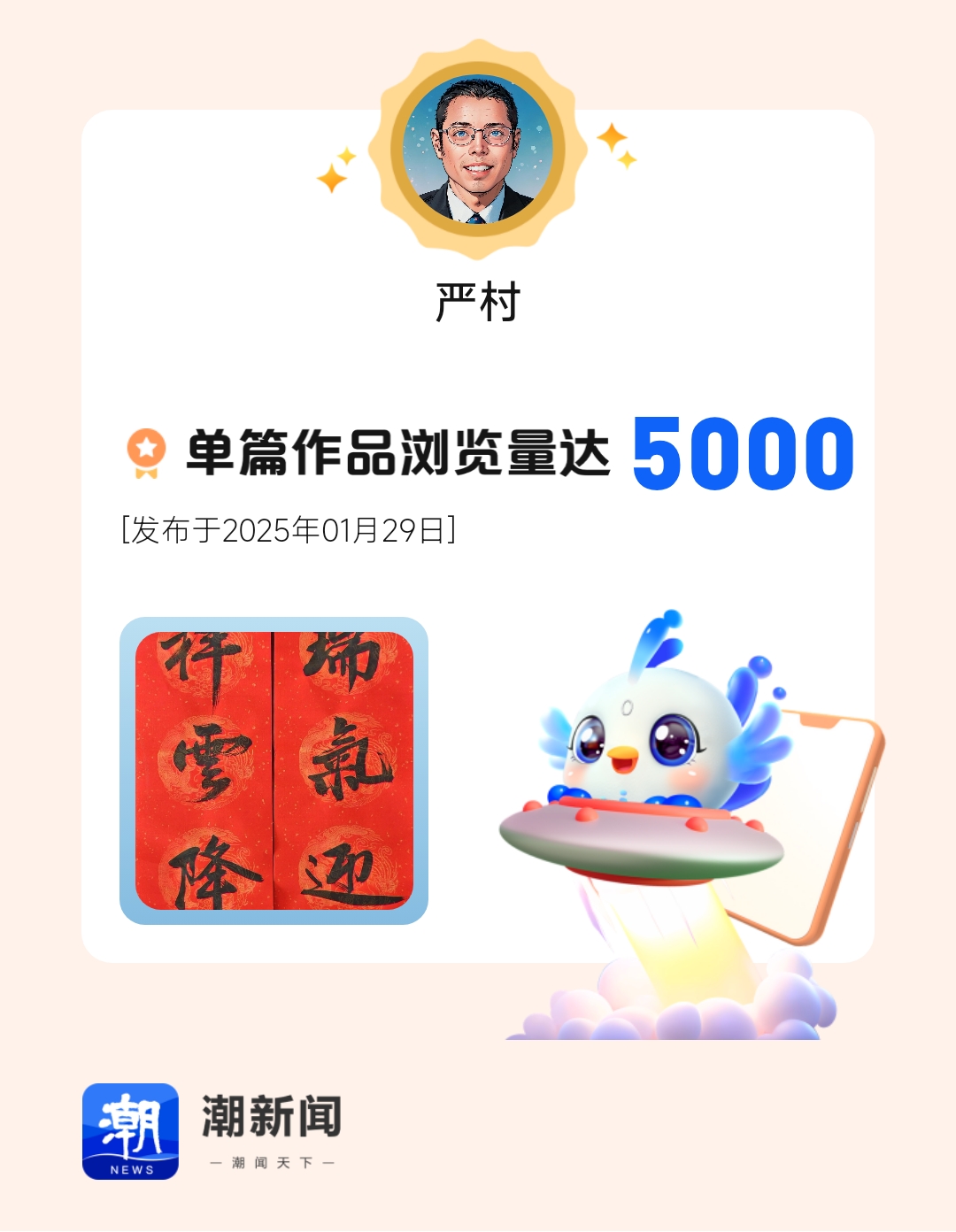 我在潮新闻发表的单篇作品浏览量达到5000!