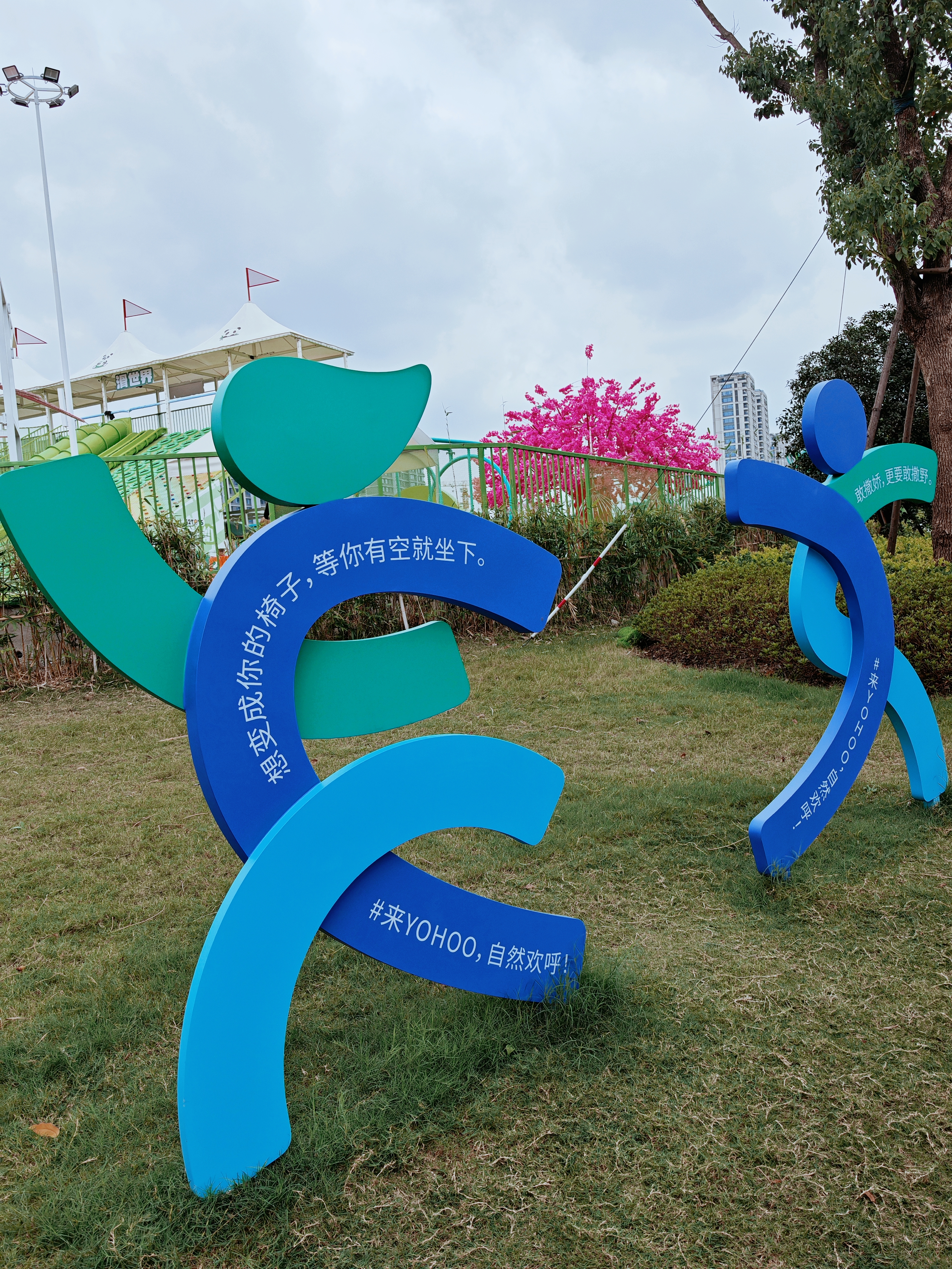 今天趁着阴天来逛位于良渚新城的玉湖公园YOHOO PARK,风一吹草叶就晃。镜面圆环里沉着云影和楼,蓝绿装置雾蒙蒙的,石头上“自然会有答案”的字还带点湿。白鹭缩脖站栏杆上,小鹿模型快跟草色混了,“巨书”纹路也潮乎乎的。连无人机取餐牌的蓝都软乎乎的,科技感和自然劲儿特搭,走起来都不敢使劲,怕碰散这安静劲儿。 本来还担心阴天逛着闷,结果这凉丝丝的风配着软乎乎的景,反倒比大太阳天更舒服呢!