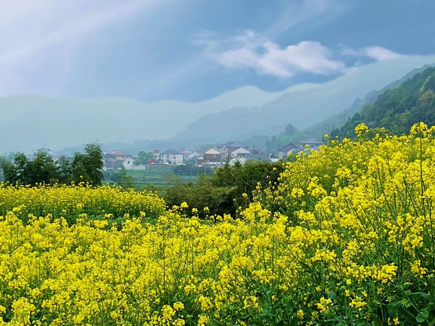 《黑山顶的春天》 位于富阳新登古城附近海拔近200米的黑山顶,村民们把连绵山坡打造成了百亩油菜花梯田,配上小景,每当春天来临时,油菜花盛开,花海层层叠叠,呈现“油菜花儿开,不语也倾城”的美景,吸引了来自各地的朋友前来观赏。 这就是金山银山”理念的指引下,村民们把黑山顶绘就了一幅生动美丽的生态画卷。黑顶山的油菜花效应成了当地发展乡村旅游、促进农民增收的一张“金名片”。