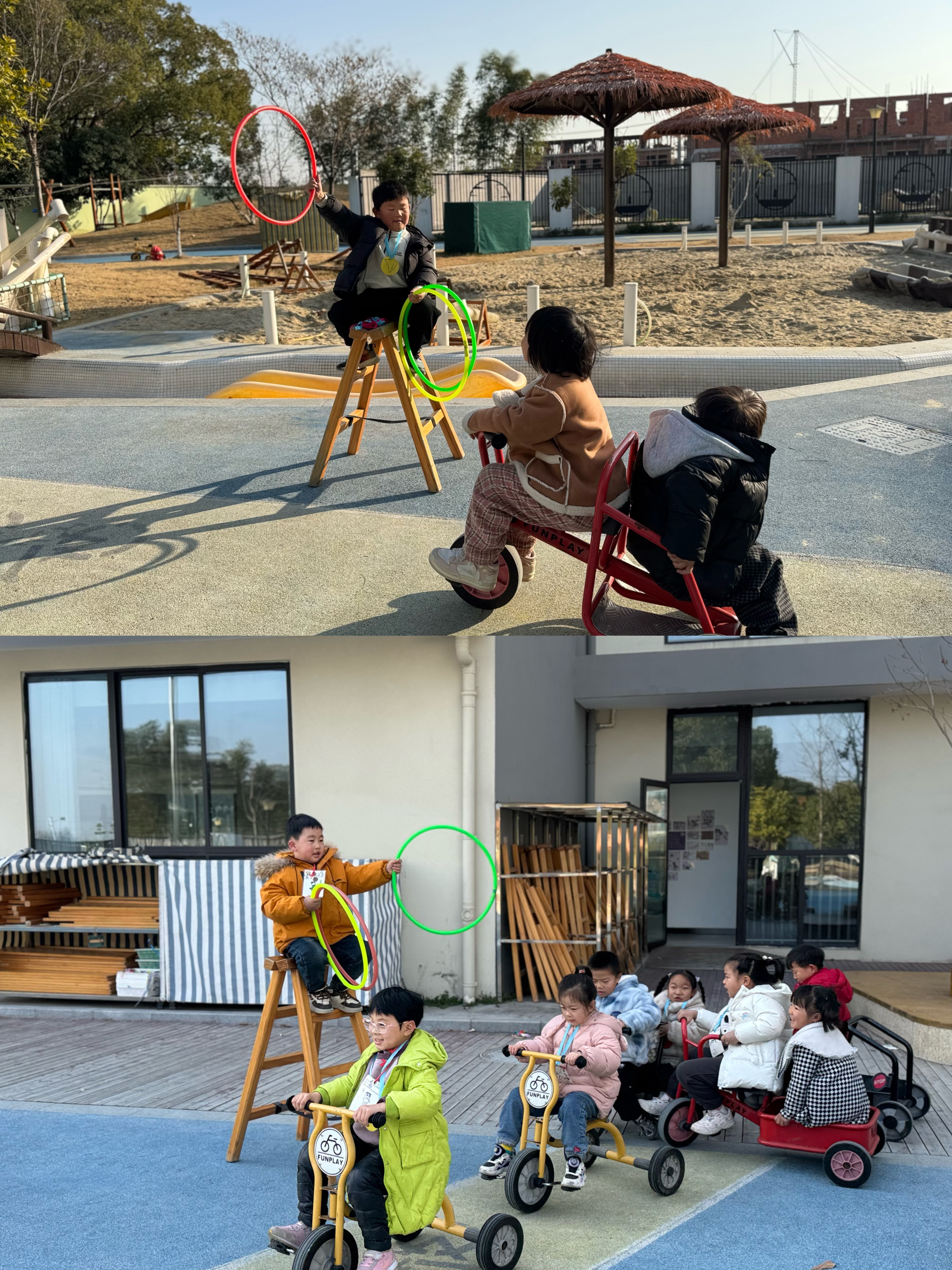 德清县钟管镇干山中心幼儿园的小朋友们,巧用木梯、呼啦圈和小车打造出趣味十足的交通安全游戏场景。孩子们有的站上木梯化身“交通指挥员”,挥舞呼啦圈模拟交通信号灯指引方向;有的骑着小车,按照“信号灯”的指示有序行驶,在沉浸式的游戏体验中,不仅锻炼了肢体协调能力,还在欢声笑语里认识了基本的交通规则,将安全知识融入童趣满满的游戏之中。