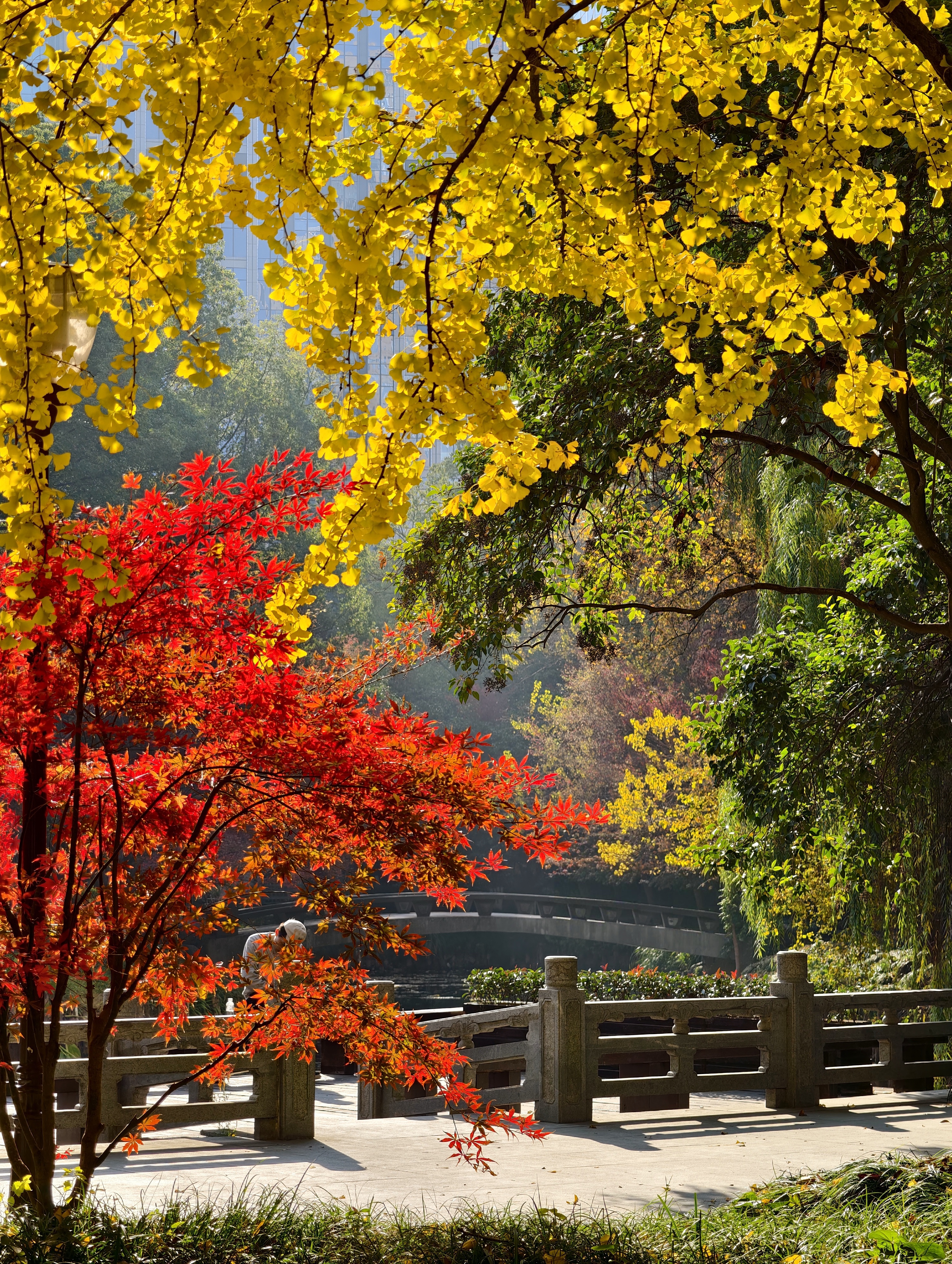 别挤九溪了!CBD彩林人少到偷笑🍁 - 姐妹们!发现宝藏拍摄地! 不用去景区人挤人 就在钱江新城! 这片CBD中心的彩色森林真的太出片了 - 📱全部手机直拍无压力 (vivo手机风光模式) 奇怪的是休息日人更少 金色银杏🍂红色枫叶🍁层层叠叠 林间小道随便走都像电影画面 - 📍定位:钱江新城森林公园 (市民中心、城星路附近) 🚇地铁直达超方便 下午三四点光线最美 记得穿浅色衣服更出彩哦~