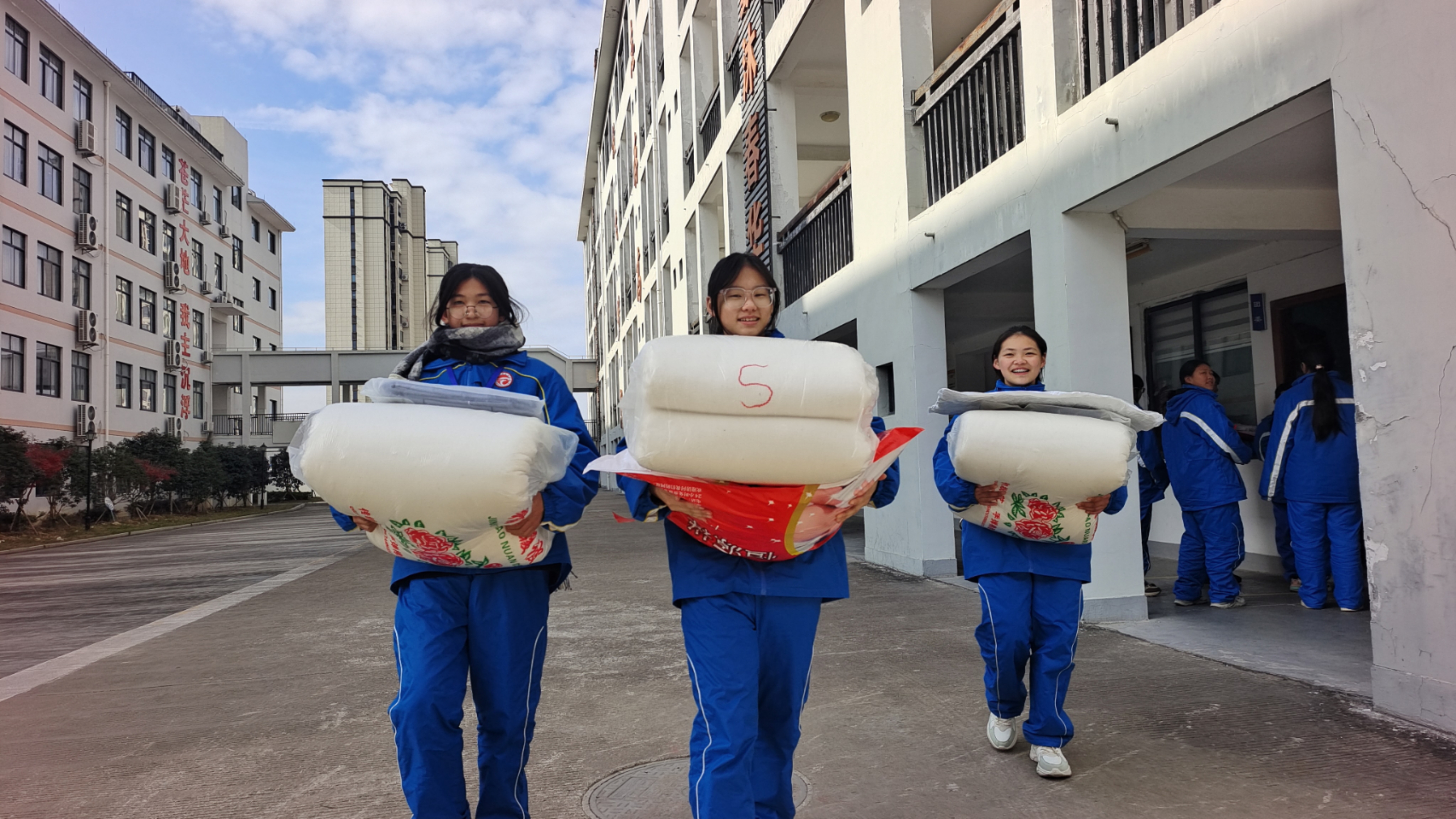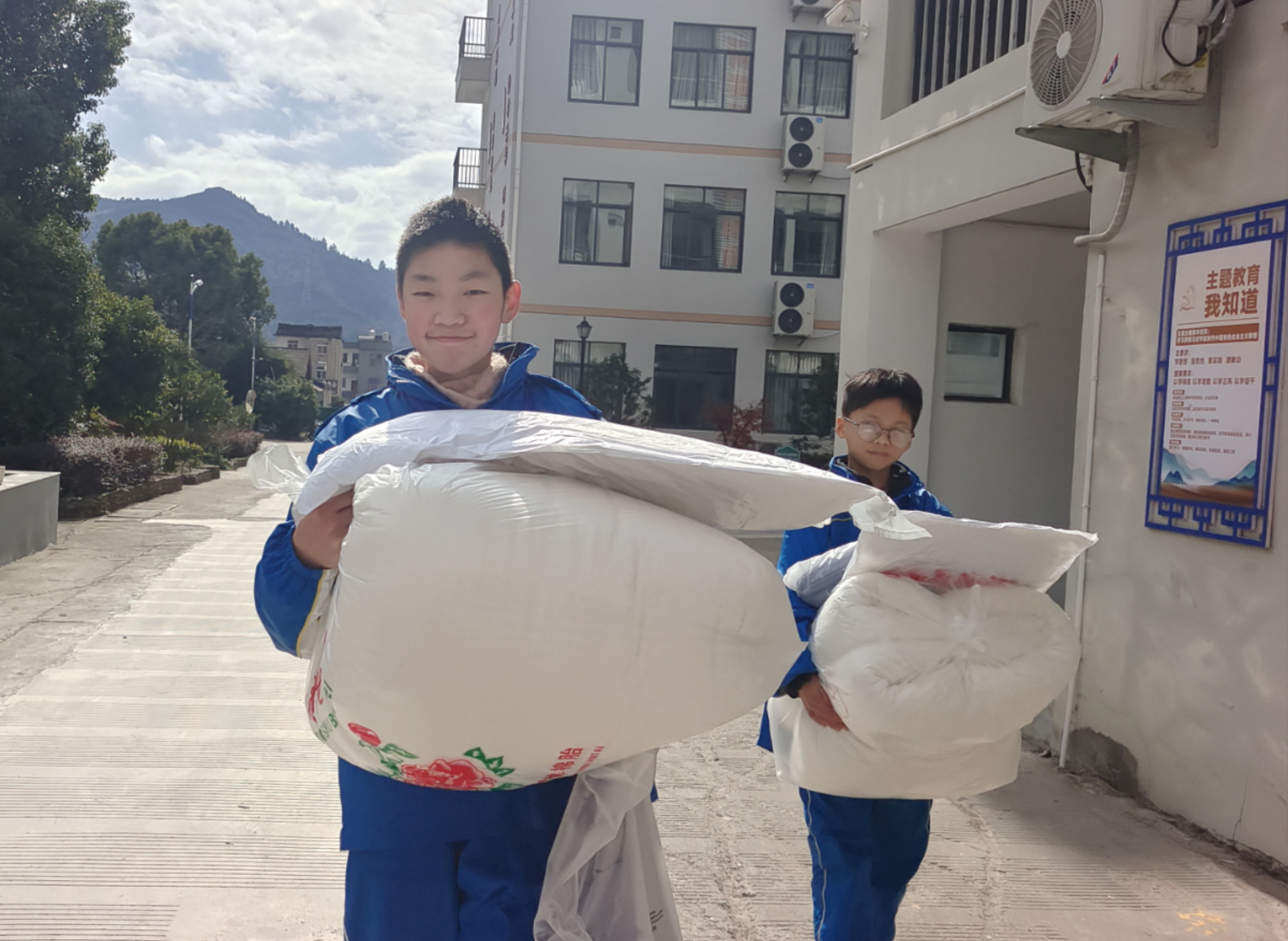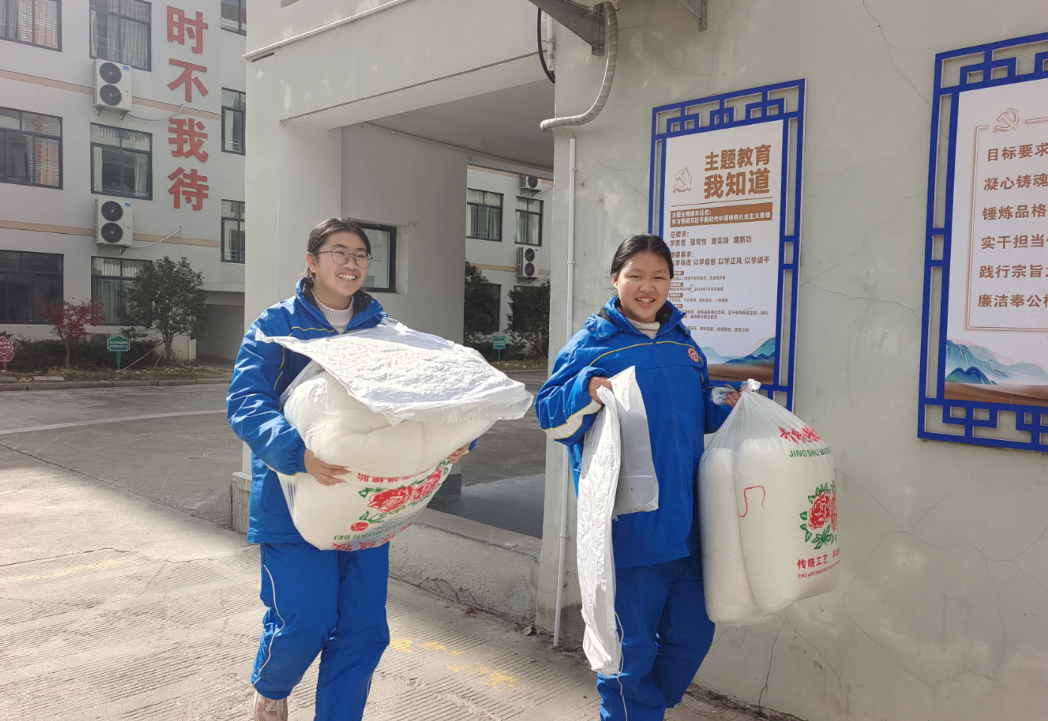 寒流骤至冷飕飕雪中送炭暖心头 ——天台教育基金会情系坦头中学欢岙革命老区学子 杨欣晨 七(1) 情长漫漫,忧思学子眠寒流;意切匆匆,急助仁心化冷冬。12月19日,天台县教育基金会领导,为坦头中学欢岙革命老区孩子送来了12床暖冬棉被。欢岙革命老区属边远贫困山区,离坦头中学最远的山村有60多里。每年,该基金会都会为七年级欢岙籍住宿生送来暖冬棉被。 图为领到新棉被的同学们脸上洋溢着幸福的笑容,他们正喜气洋洋地把棉被送往寝室。身为小记者的幸佳乐表示,衷心感谢教育基金会对老区学子的关怀,这个冬天我们不用再怕冷啦。 指导老师 卢鹤龄