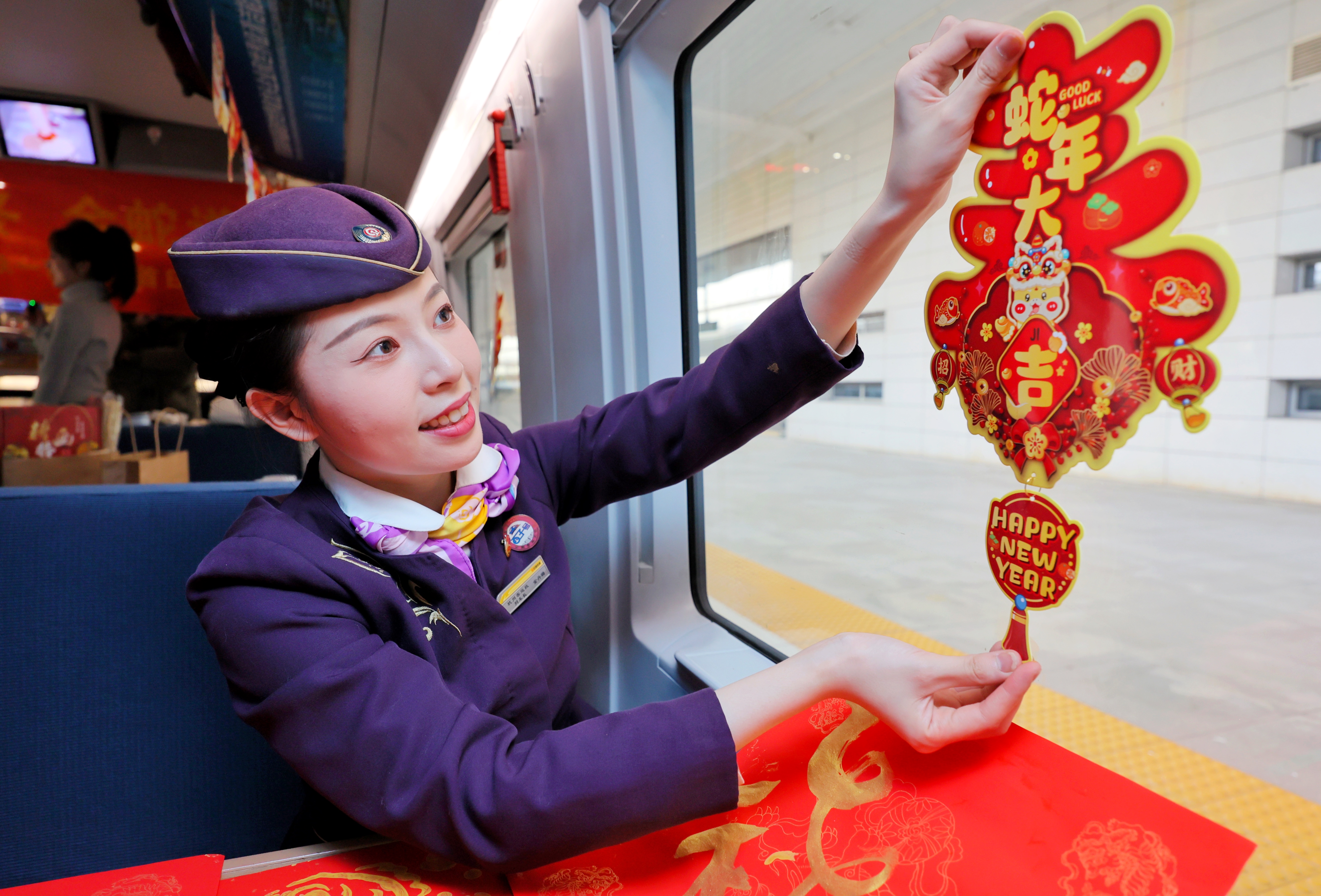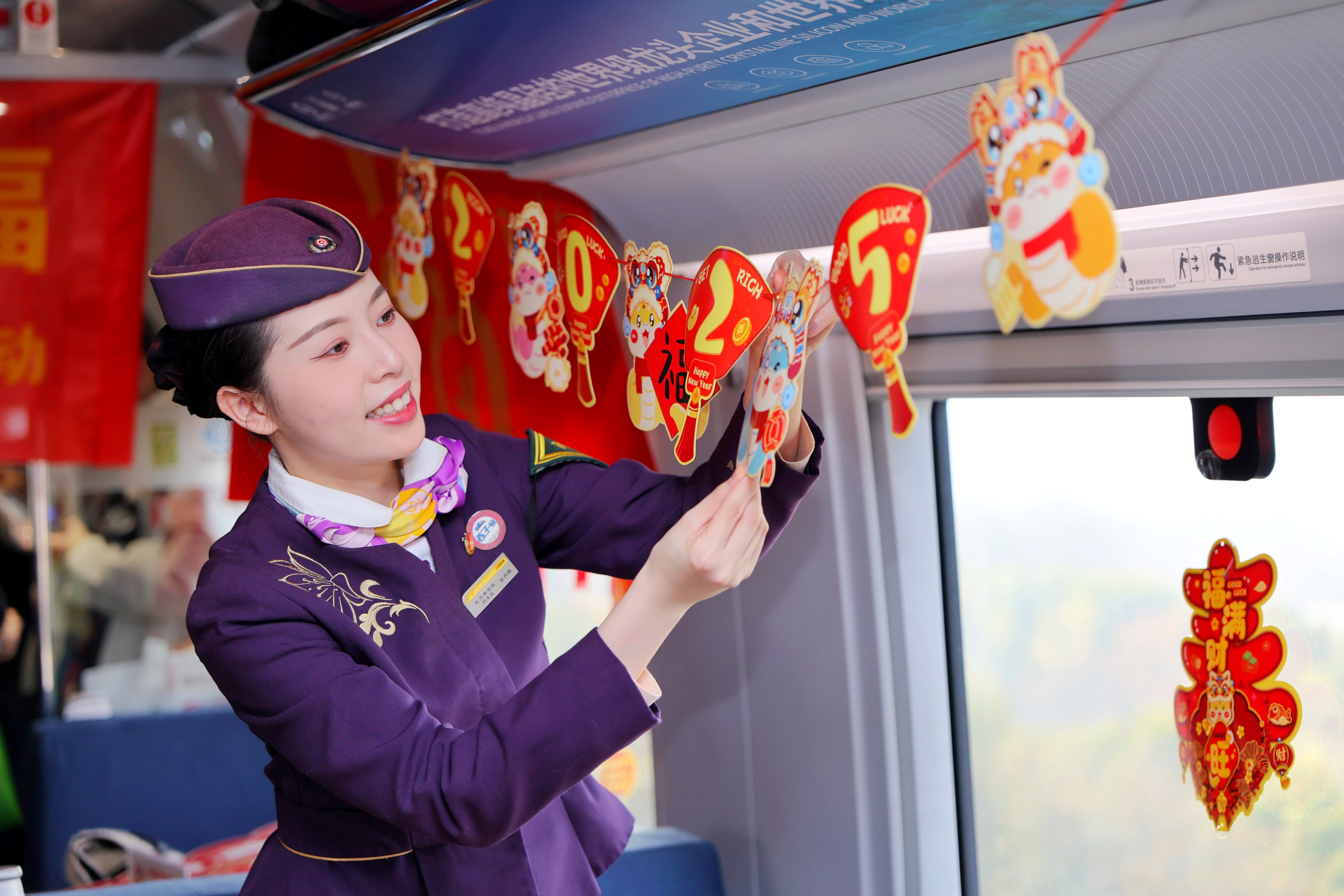 高铁车厢年味浓,温馨喜庆迎小年 2026年2月10日,铁路杭州客运段高铁三车队联合杭州乘警支队,在G1960次列车上,开展“小年逢归客,高铁载春归”主题文化活动,飞驰的高铁列车变身温馨的年味驿站,让旅客们在旅途中沉浸式体验非遗手作、观赏文艺表演,共迎新春佳节。