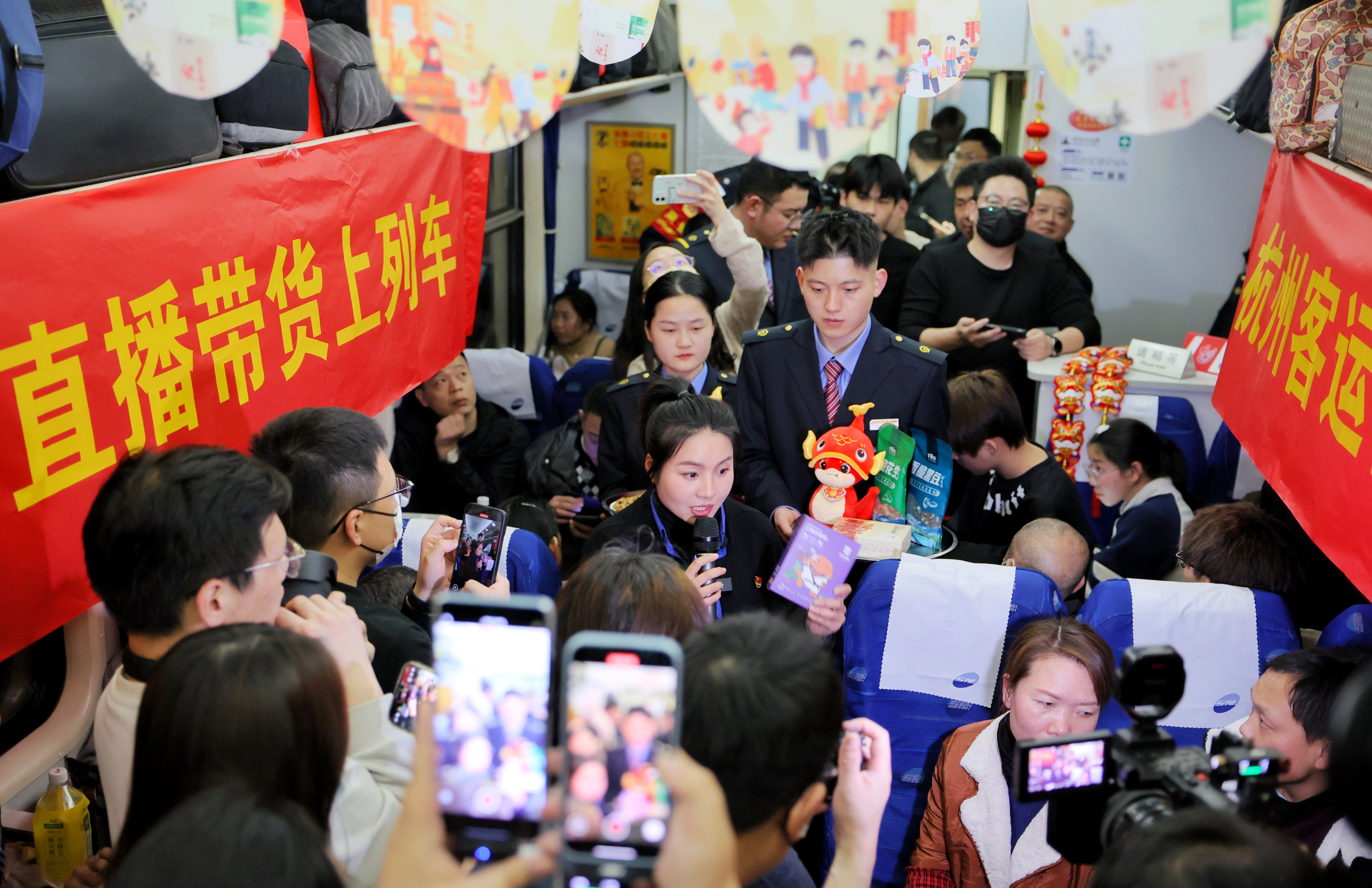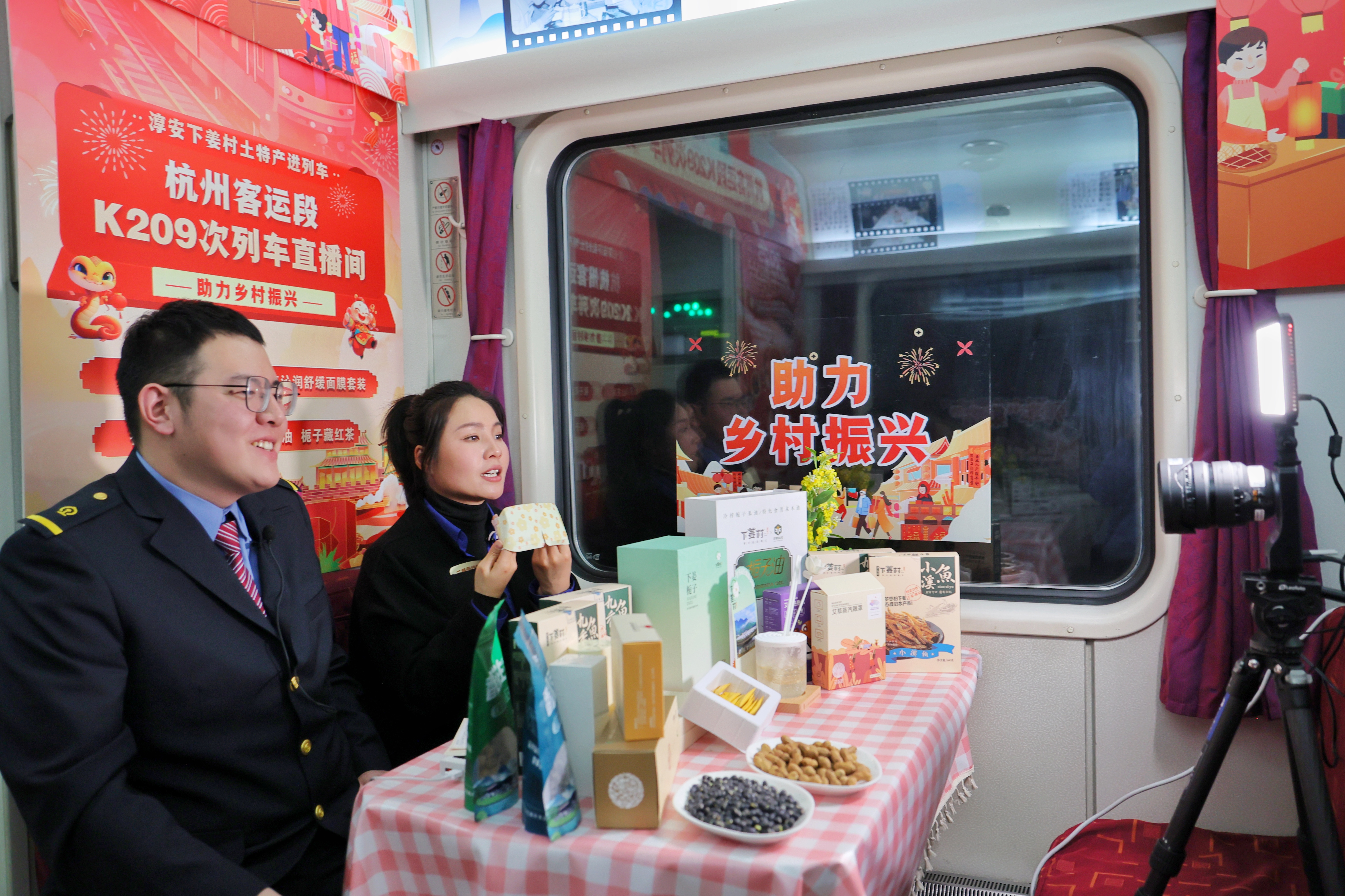 列车“集市”助力乡村振兴 2025年1月20日,在宁波开往广州白云的K209次列车上,一场别开生面的农产品推介活动正在火热进行中,浙江偏远地区淳安当地的特色土特产,走进列车“集市”,随着这趟往返于浙江、江西、广东三省之间的列车,打开了传播新局面、销售新渠道。