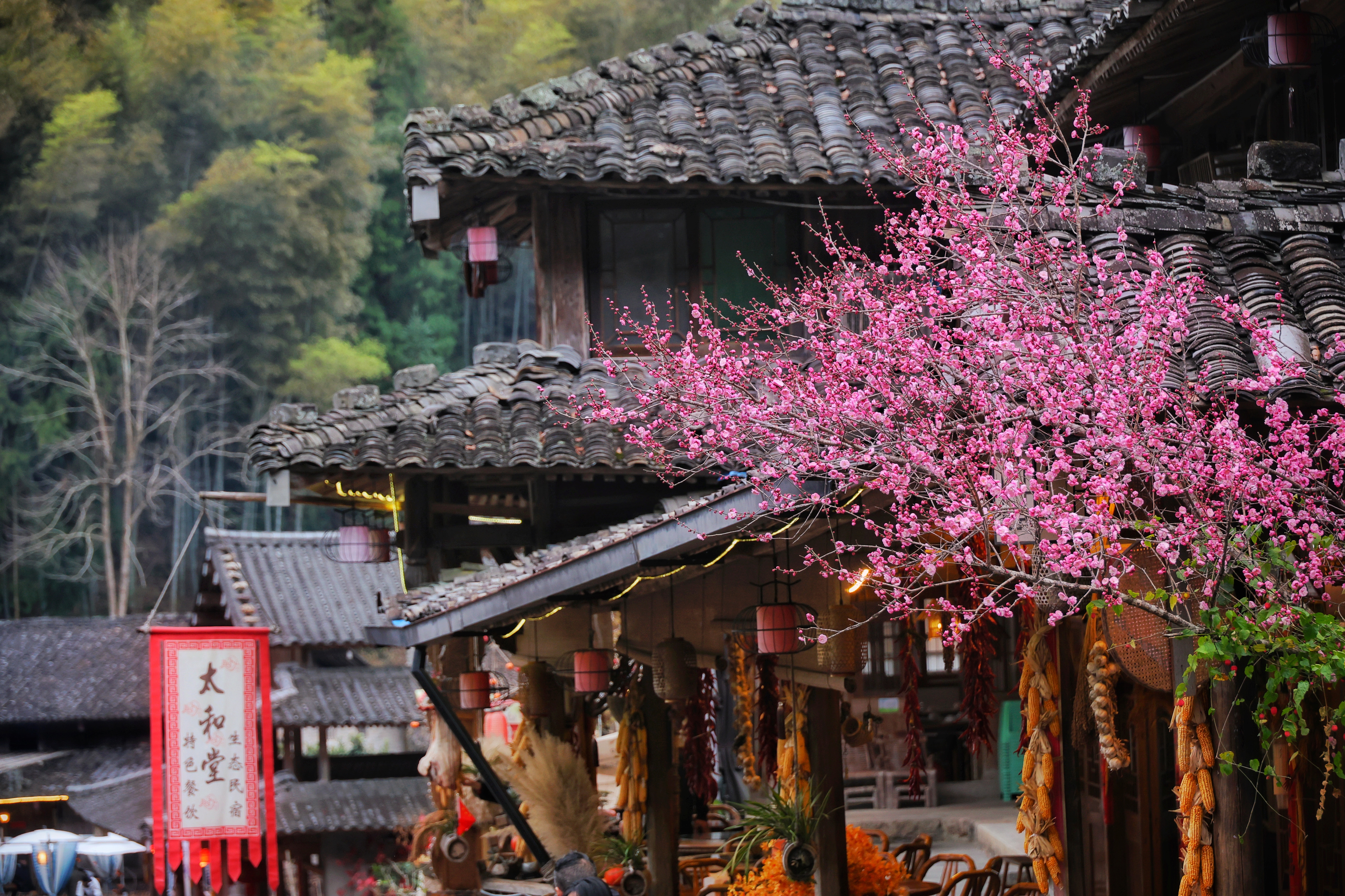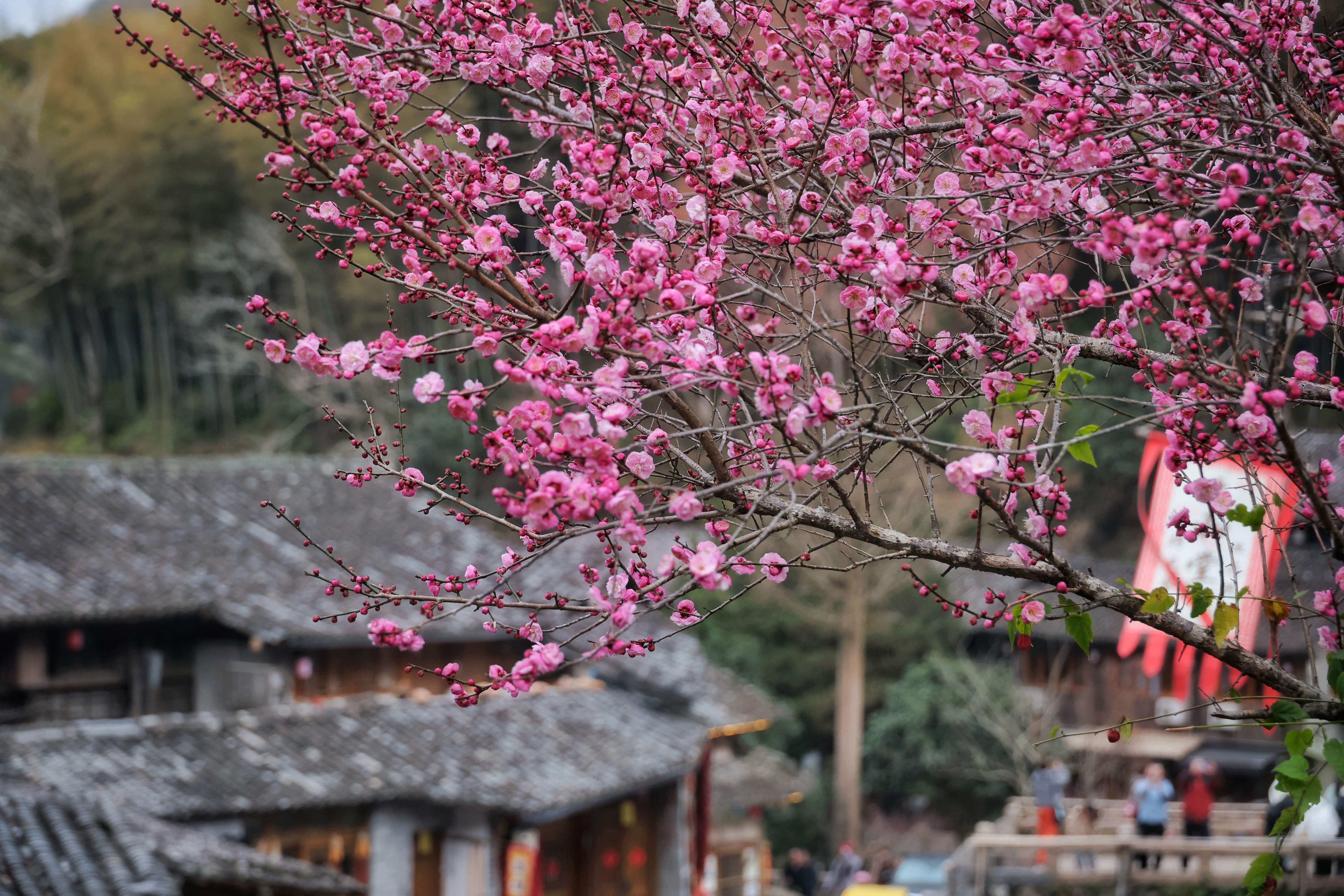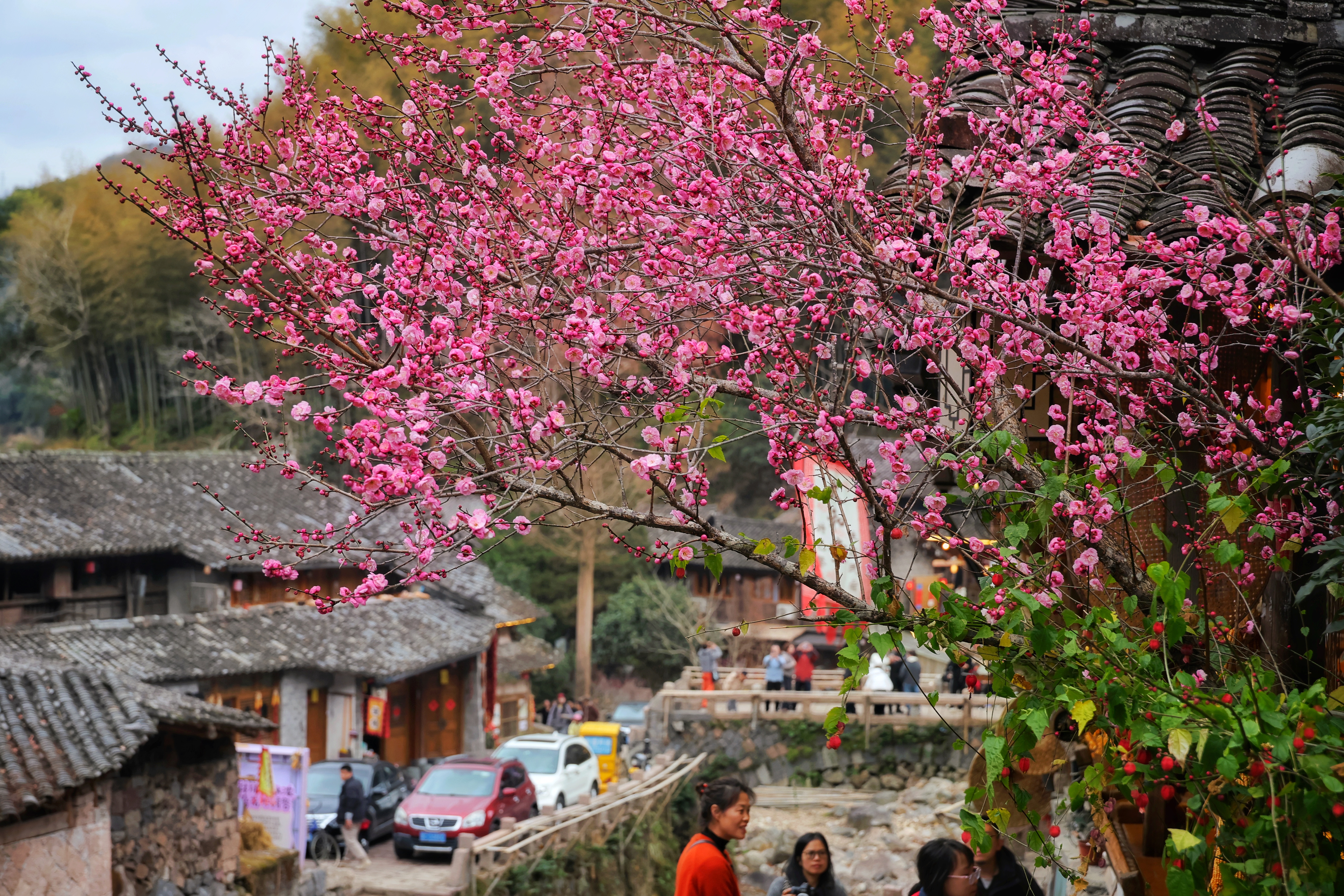 古村梅花开 2025年2月1日,春节假期,浙江省温州市林坑古村落,红梅盛开,香气扑鼻,吸引了各地游客,前来观赏打卡。