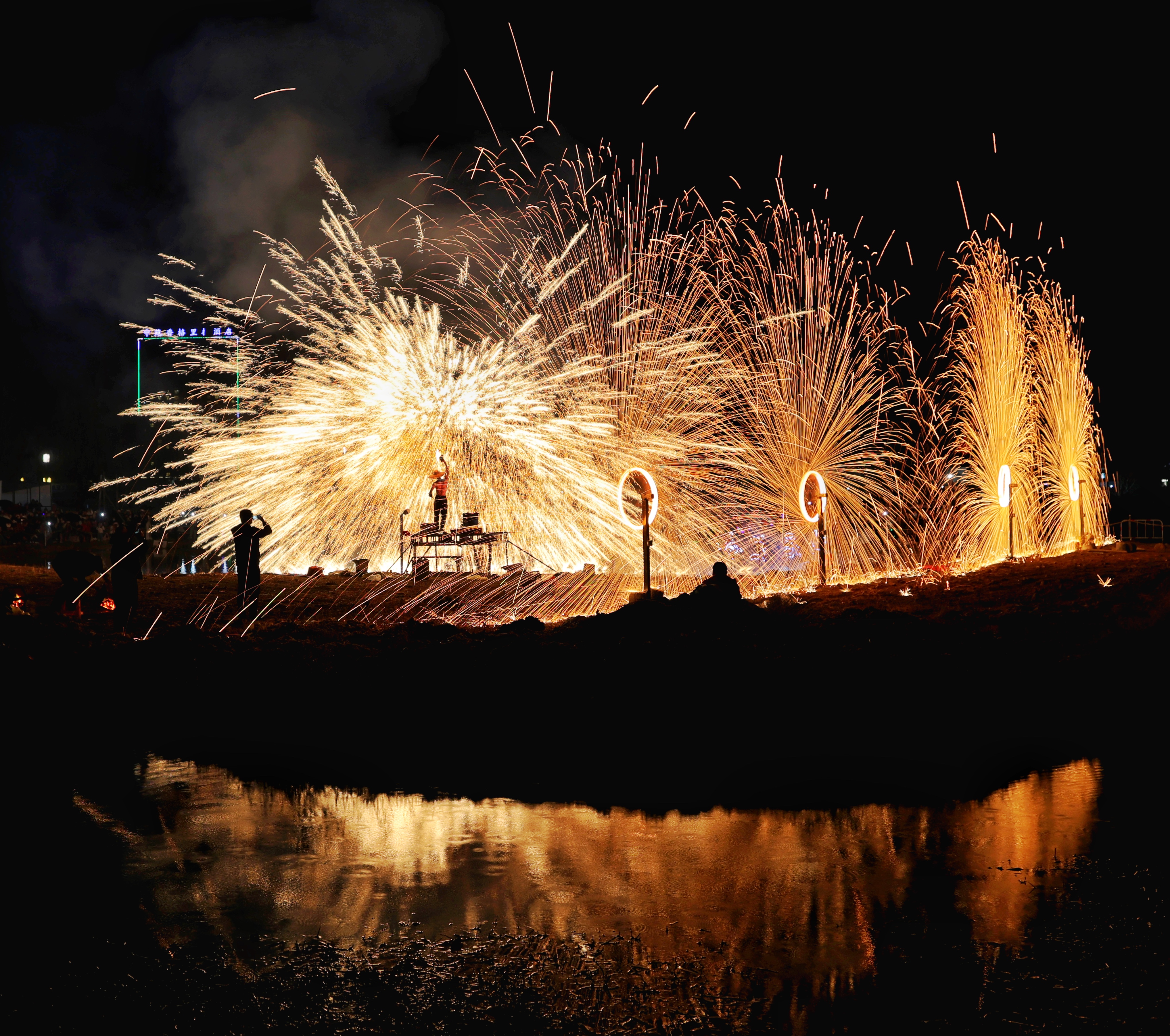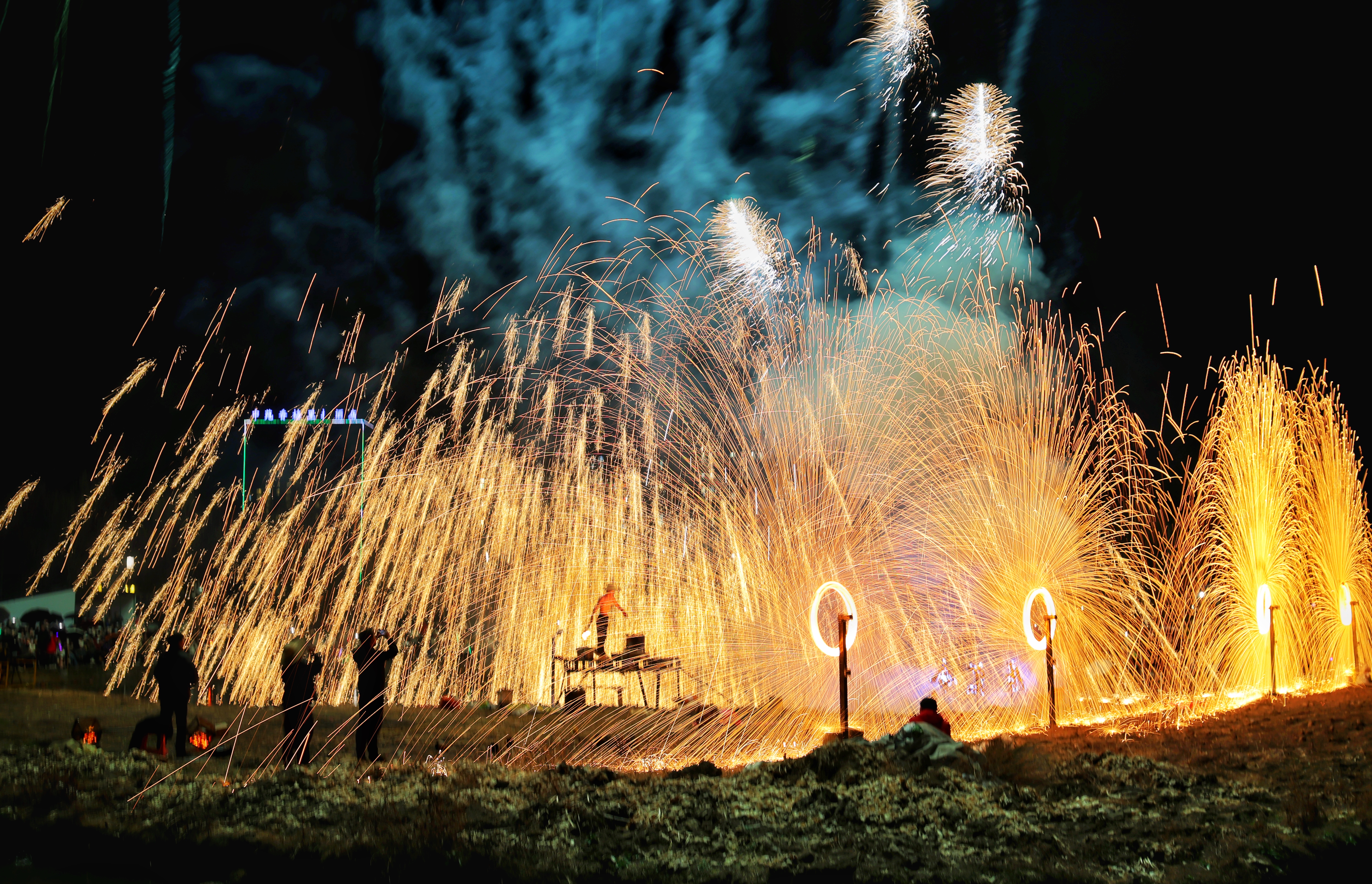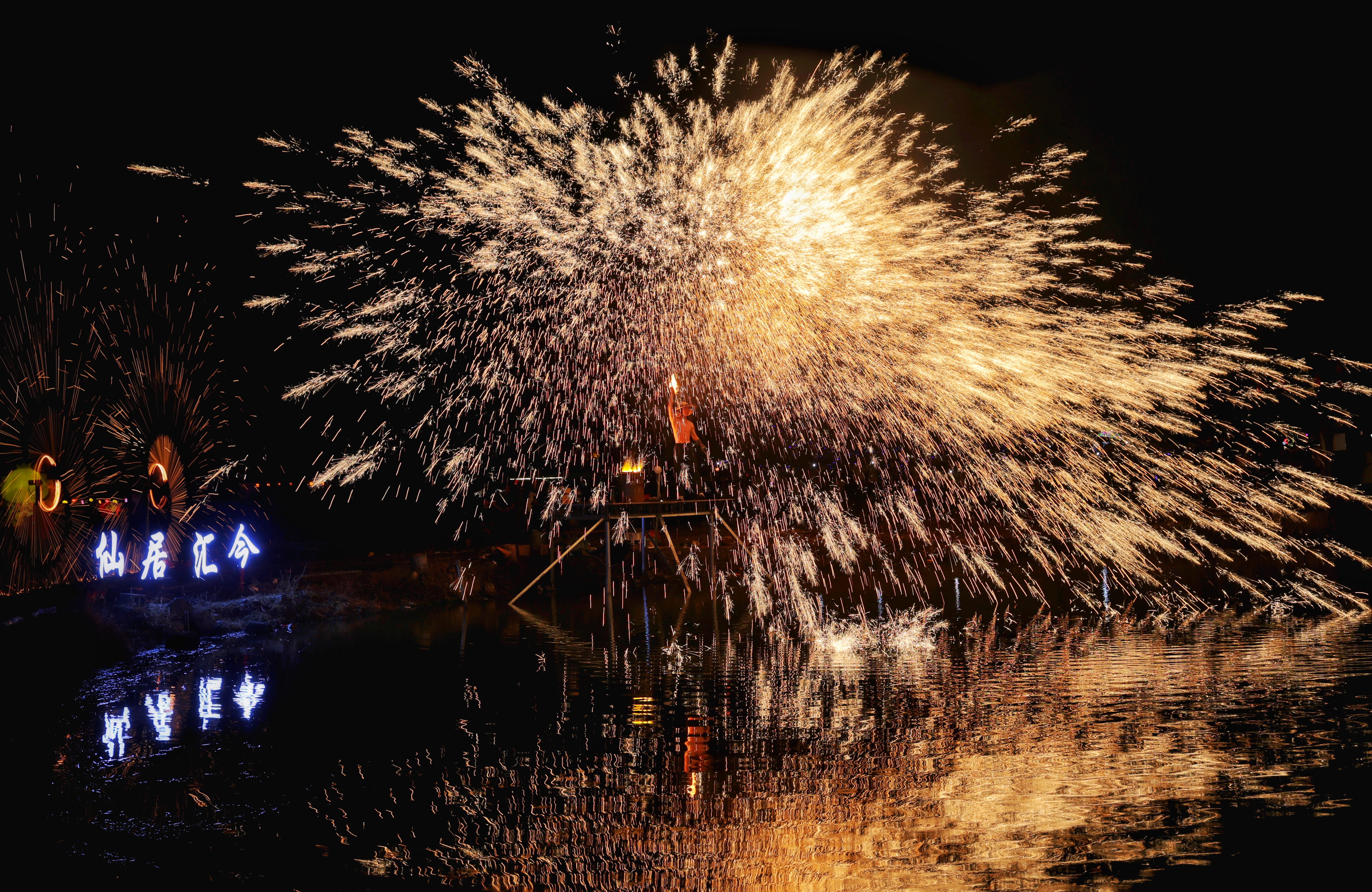 打铁花 贺新年 2025年2月1日,浙江省台州市仙居县,精彩的打铁花吸引了众多游客前来观赏。