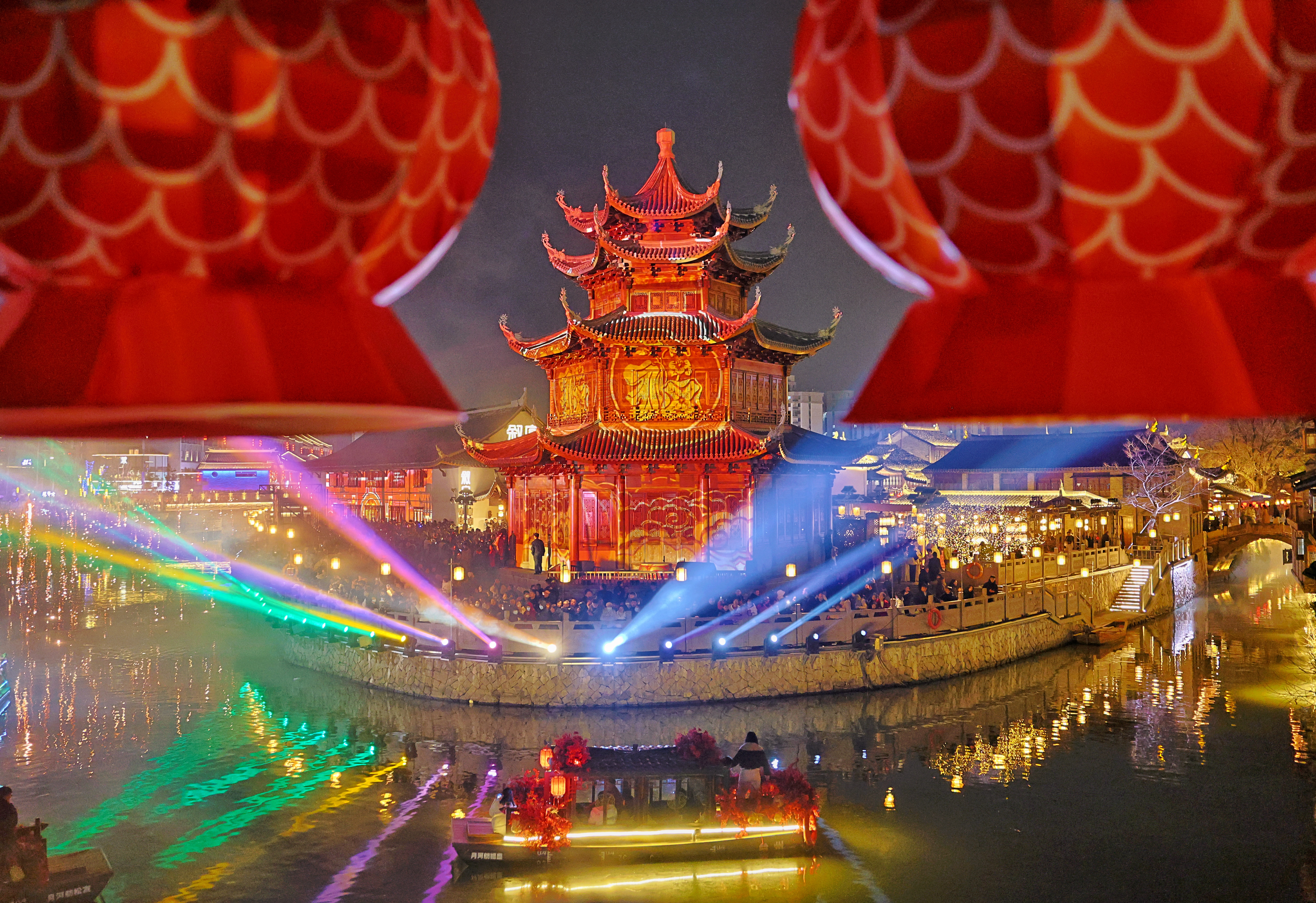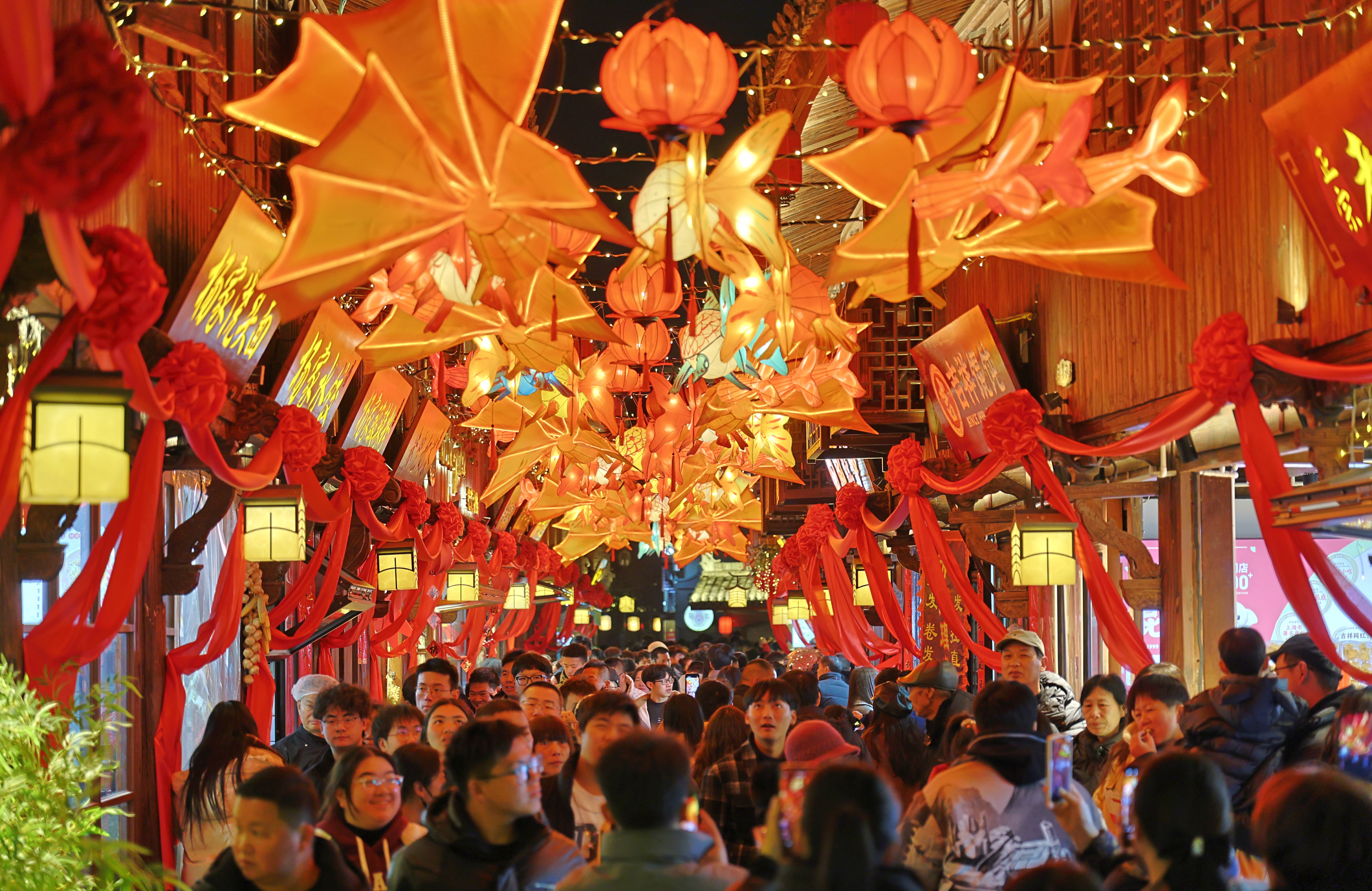 老街红红火火过大年 2025年1月29日,春节假期,浙江台州路桥十里长街张灯结彩,吸引了广大市民和游客前来观光游览,乐享春节假期。