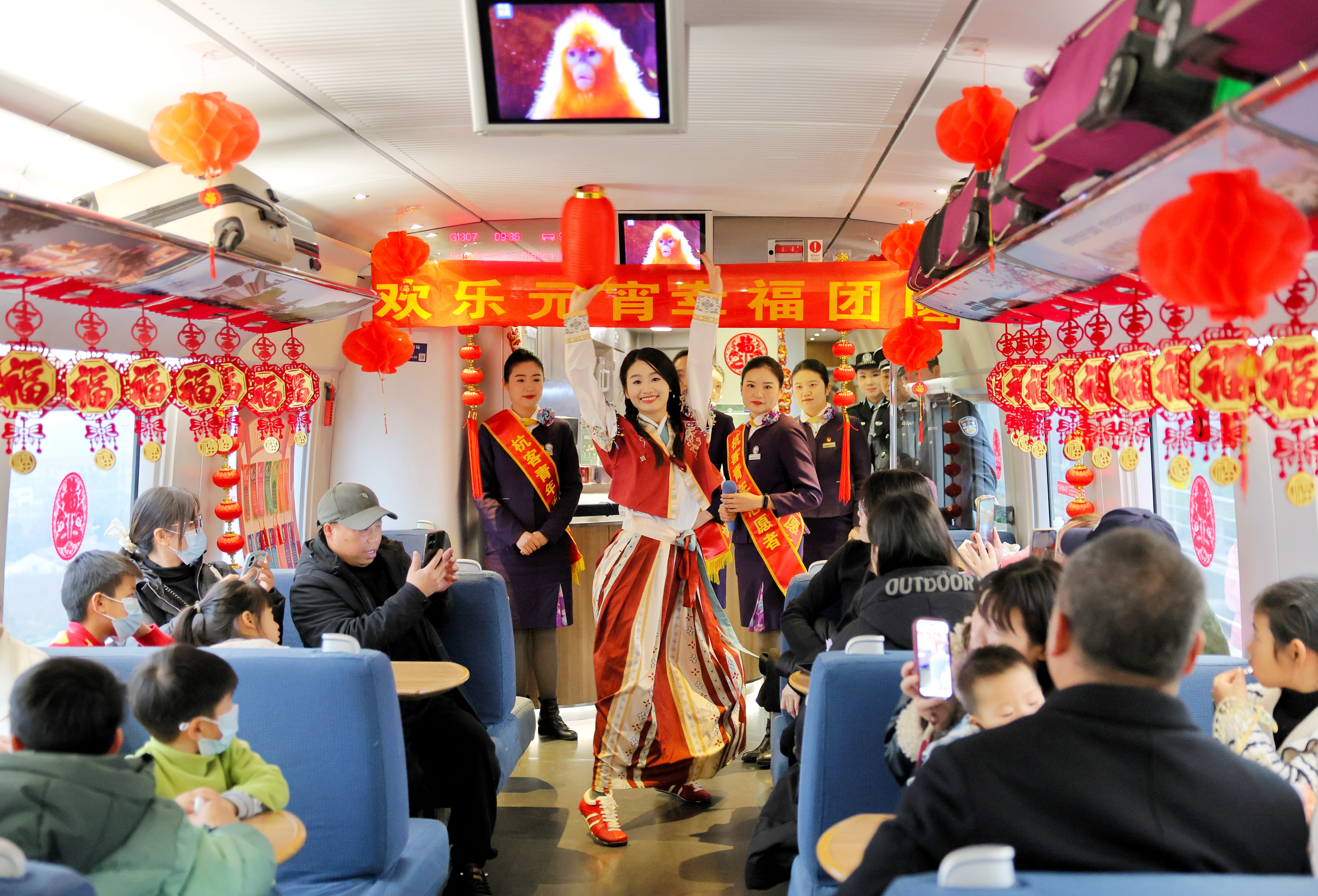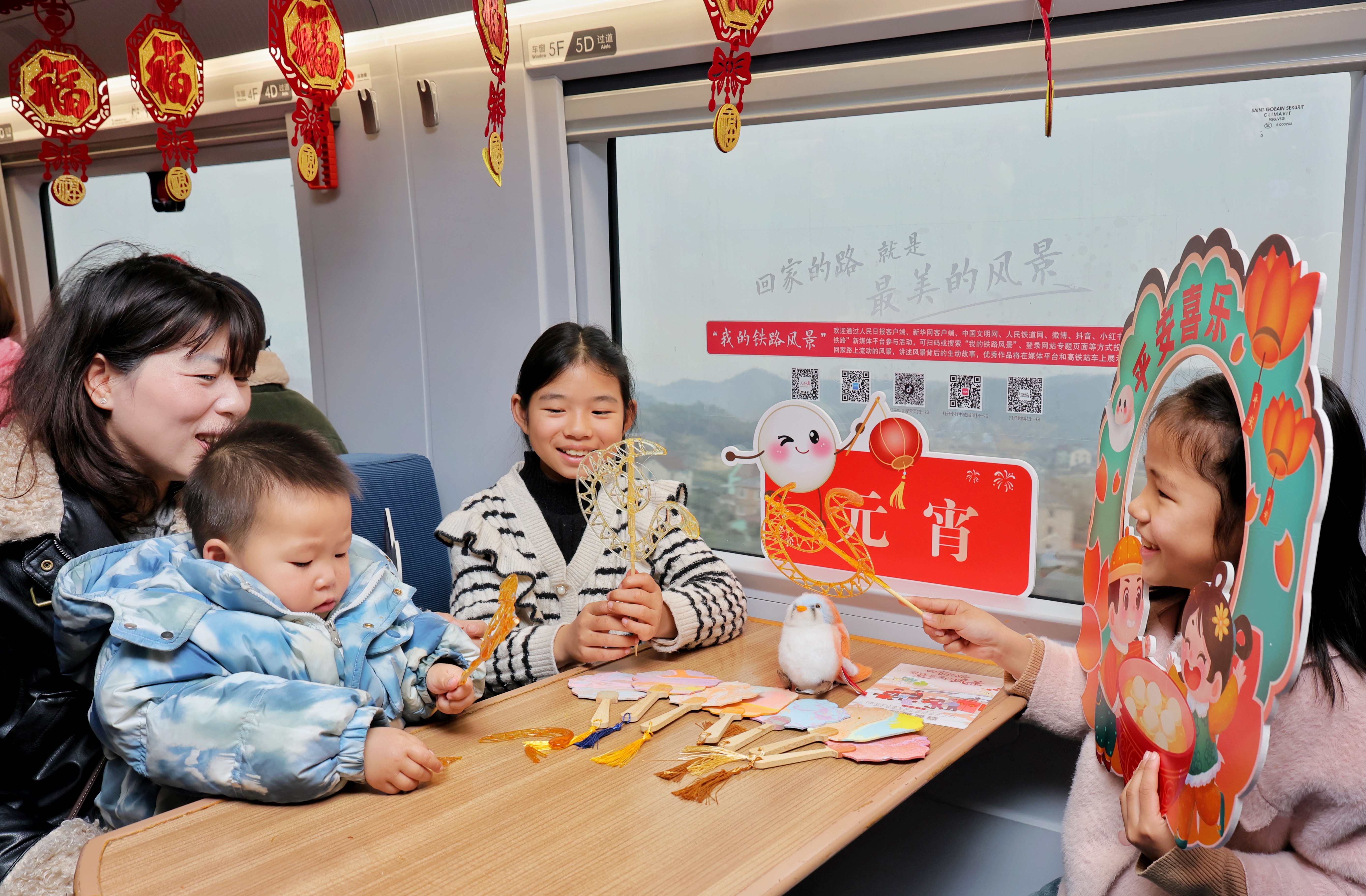《灵蛇献瑞高铁上,欢声笑语过元宵》 2025年2月12日,杭州东开往怀化南的G1307次高铁上,铁路杭州客运段高铁二车队联合杭州乘警支队开展“灵蛇献瑞 喜乐元宵”主题活动,与旅客们共度元宵佳节。
