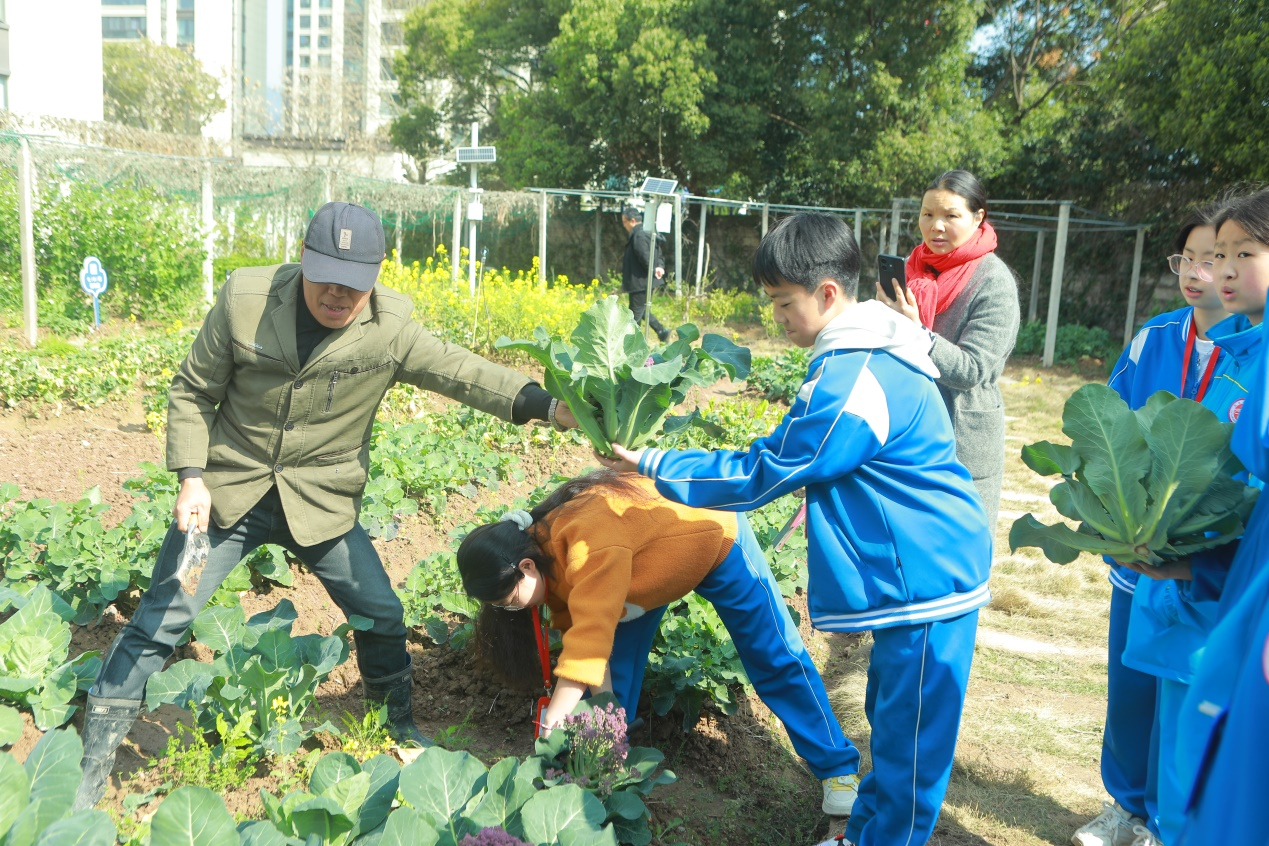 #天台有礼# 3月25日,天台县坦头镇宣传办组织天台县坦头中学的实践基地里,迎来了一场别开生面的“丰收节”。丰收的主角不是普通的青菜,而是承载着数学之美的“斐波那契函数菜”——三个品种分畦列队,一色菜心金黄如暖阳凝脂,一色嫩绿如初春新芽,一色紫红如晚霞浸染;外围的绿叶层层舒展,将三抹亮色稳稳托举。