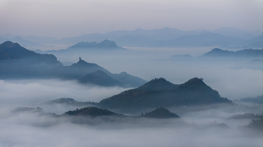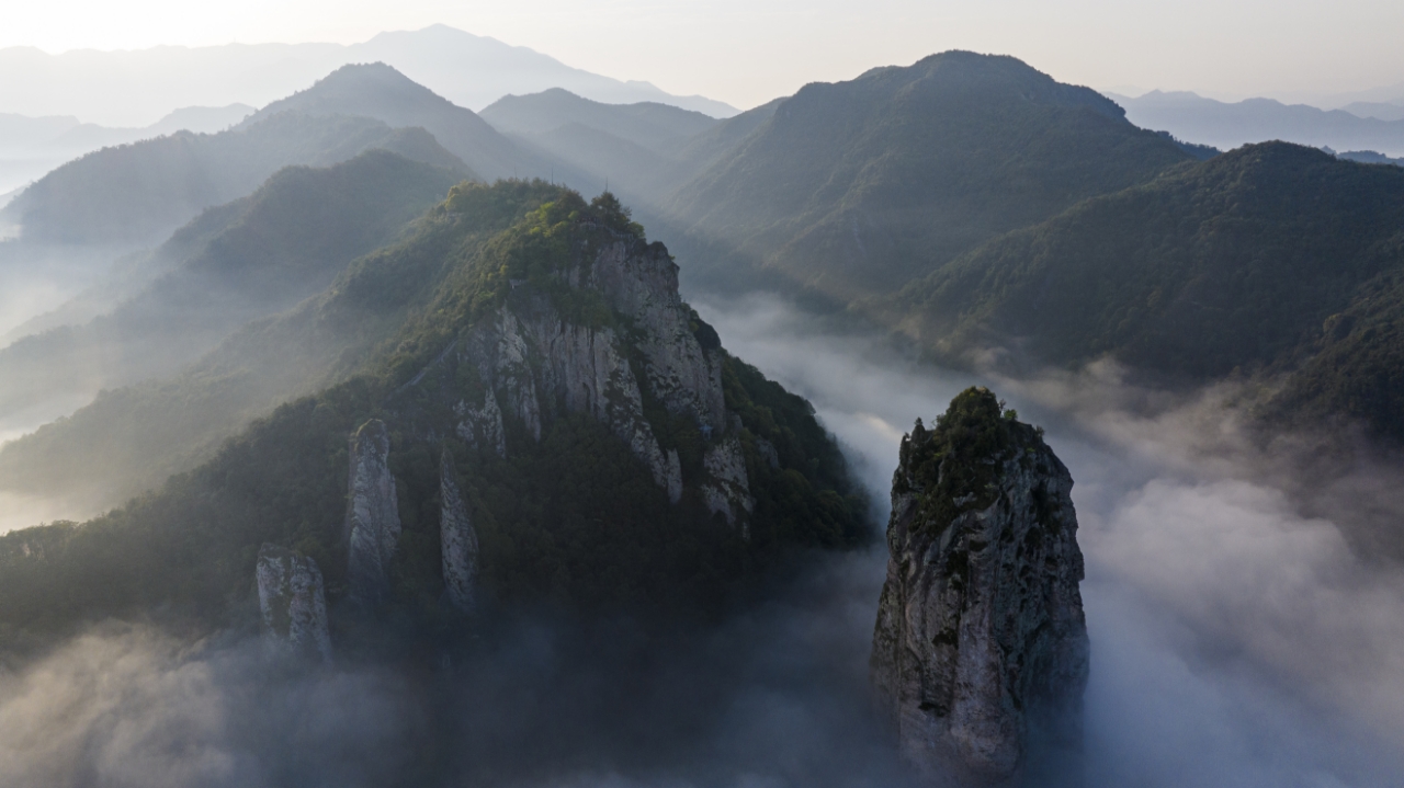 《雾锁仙都》 晨光初破时,仙都浸在羊脂玉般的雾霭里。景区铁门未启,无人机已悬作空中观景台,在云絮间丈量天地经纬。 远山如砚中墨色层层漫漶,最远那抹青痕已洇作水墨边缘的淡影。雾是通灵的画师,时而将石笋峰缠作宣纸上的湿笔皴擦,时而掀开碧溪一角——那水色是惊心动魄的碧,恍若十万茶树初绽的芽尖都化在溪中。忽有晨风裁开雾幔,石帆峰顶的孤松乍现,恰似云鬓斜簪的碧玉步摇。溪面初时仅浮着游丝,转瞬便自鼎湖峰岩隙涌出,将整条好溪浸成半透的生绢。泠泠水声裹在雾里,如隔三秋的旧梦。这雾是通灵性的,总在峰峦将隐未隐时,将那座"天下第一峰"化作悬腕的巨笔,饱蘸宿墨凝驻苍穹。 上世纪八十年代,当吴宗祺的胶片初吻这片山水时,仙都尚是未出阁的处子。他的镜头截住鼎湖峰破雾的刹那——彼时山径覆着樵夫的晨露,白鹭振翅惊破的涟漪里,倒映着未遭栈道切割的原始轮廓。那张定名《仙境》的作品,以雾为绢裱起石峰碧溪,竟教天地自成对仗的联句。 此刻立于朱潭山畔,雾中叠印着新旧时空。溪水仍绿得能滴出青釉,石峰依旧孤绝如断简,只是自吴氏按下快门始,仙都的魂魄便再难囿于山岚。千万镜头纷至沓来,唯晨雾年年履约,为每帧画面蒙上欲辨忘言的怅惘。 雾绡稍敛时,溪底卵石历历可数。鼎湖峰倒影与本体对望,恰似云中巨灵照水理妆。最妙是那架古碇步桥,青石墩缀作时光帧格,驮着老农与黄牛悠悠涉水。红衣姑娘担着春笋碎步相随,竹篓晃碎满溪翡翠,波痕又将人影缀成连绵的叙事长卷。 这分明是幅会呼吸的水墨:老农是枯笔扫出的淡赭,姑娘乃工笔点染的朱砂,晨雾则是生宣上氤氲的留白。忽忆邵家业《山村烟雨》中,樵子负薪踏碎满山空翠。而今林木虽丰,碇步桥的跫音仍应和着旧时平仄,只多了些举着手机采诗的现代骚客。 溯雾而上,溪色渐浓如春茶初瀹。一尾赤鳞乍破琉璃镜,溅起的水珠惊醒倒悬的巨峰——鼎湖峰自雾中拔节而起,峰巅没入流云,恰似仙人搁笔时悬而未落的墨滴。想那吴宗祺定是窥见了这刹那的灵光,方将仙都的胎记烙在了时光的胶片上。 雾霭游至轩辕祠前,恰逢粉裳仙娥在石阶翩跹,演绎黄帝定鼎后的霓裳羽衣。祠内香烟与晨雾缱绻,难辨人间灶火或太虚云烟。传说黄帝在此羽化时,丹炉坠峰成湖,如今唯殿前唐柏年轮里,还锁着千年前的丹砂余温。 吴氏《仙境》成名后,索道如银链缠上石峰,打卡石碑在朱潭山落地生根。而晨雾依旧岁岁赴约,执着地为山水守着一阙未译的密码。 大抵世间风景皆如此——未题名时是惊鸿照影,世人皆知后便成注释。唯年年来归的雾霭,总在快门起落间,轻轻掩住那些被光阴摩挲的、秘而不宣的惆怅。
