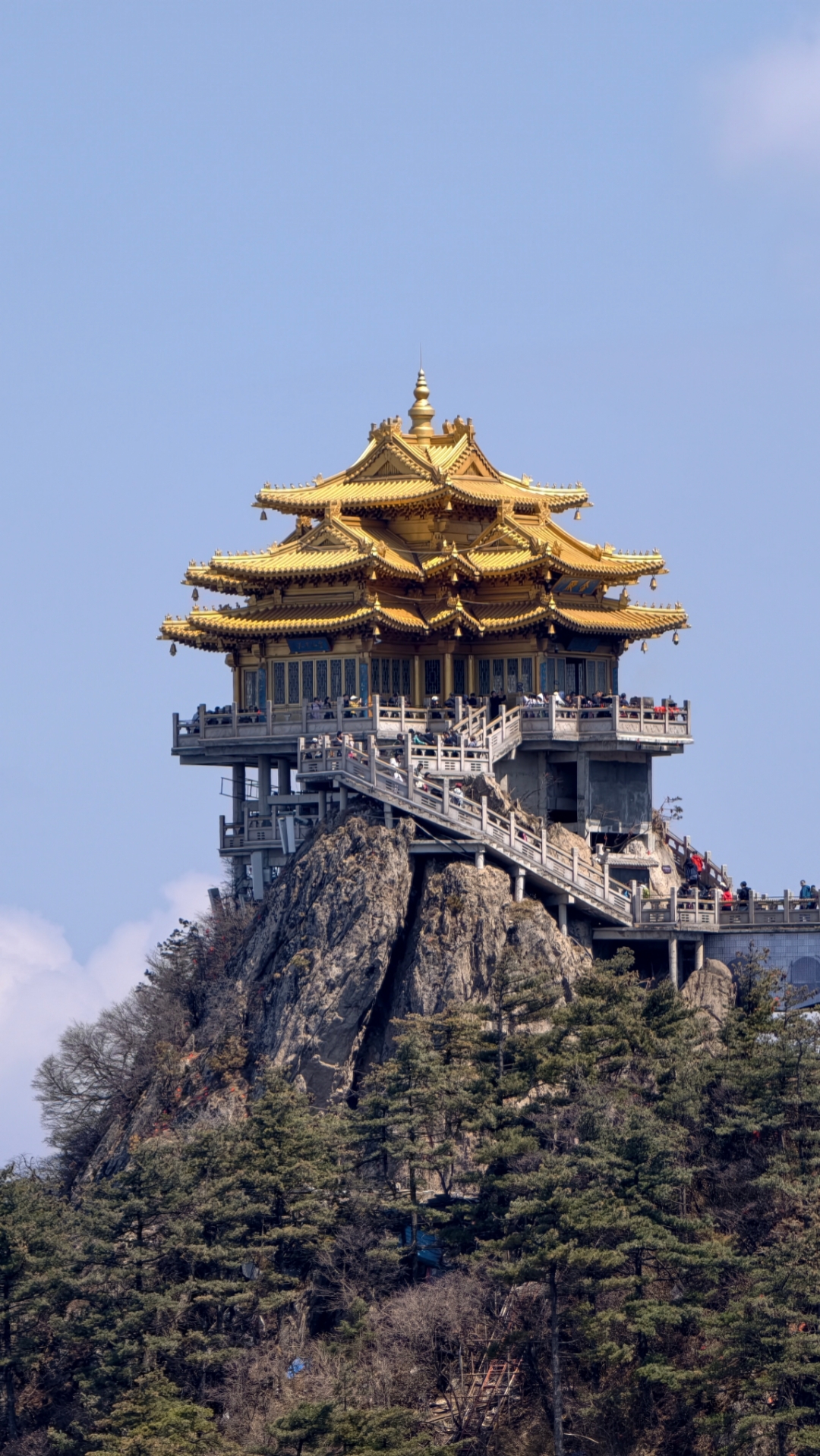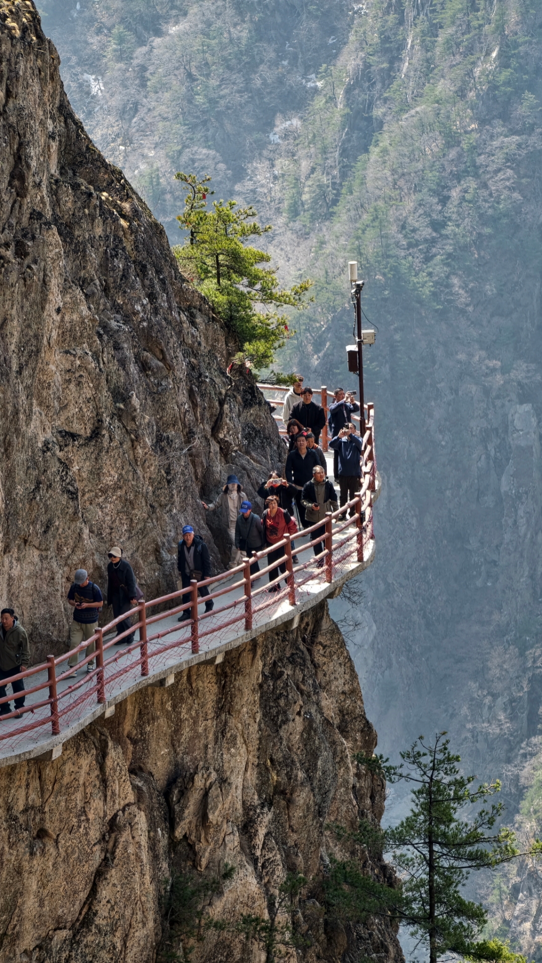 海拔两千余米老君山上,环山水平悬空栈道似蛟龙盘卧,惊险中尽显壮美。#老君山#