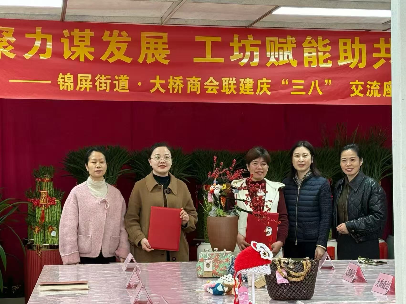 春风共富路,巾帼她力量 大桥商会联合锦屏街道开展共富工坊交流比拼活动 孙亚惠朱甜甜马宜奋 三月春暖,花开正好。在“三八”国际妇女节来临之际,大桥商会联合锦屏街道妇联,于3月6日在袁氏花艺基地举办了一场精彩的共富工坊比拼交流活动。商会女企业家、街道女干部及村社妇联负责人等齐聚一堂,以技艺切磋凝聚共识,以资源对接赋能共富,在春日里奏响了一曲“她力量”的奋进之歌。 作为商会副会长单位,同时也是此次活动重点推介的共富工坊,袁氏花艺基地历经升级改造,以全新姿态亮相。活动现场,烟火气与花香交织升腾——烧烤区炭火正旺,围炉煮茶区茶香氤氲,花卉打卡区,各色花艺装置错落有致,花团锦簇。居敬、锦绣、长岭等社区共富工坊借此带来特色产品展销,手作花饰、编制小品、传统美食琳琅满目,生动展现出工坊带动周边妇女实现就业增收的实践成效,成为以“小切口”撬动“大共富”的鲜活样本。 在春意盎然的氛围中,一场聚焦共富实践的交流分享会顺势开启。各共富工坊代表与商会女企业家们围坐一堂,围绕工坊运营、资源对接、妇女就业等话题展开深入交流。现场,合作喜讯频传,袁氏花艺与锦山社区率先达成合作共识并正式签订共建协议——锦山社区将组织辖区妇女发挥手工编织特长,制作各类勾线小礼品,袁氏花艺将其融入花艺产品的设计与销售,双方合力打造“花艺+手作”的特色组合。商会裴总也携具体合作方案参与其中,其位于弥勒圣坛的专属展位,与锦山社区敲定合作事宜后,近日便将社区妇女制作的毛线钩织文创产品布置上架,让这些饱含匠心的手作好物,成为巧手产业的线下新亮点。锦屏街道党工委副书记胡蓓蓓在交流中表示:“共富工坊是凝聚巾帼力量、激发乡村活力的重要平台。今天的签约开了个好头,期待更多社区与商会企业握指成拳,让“指尖经济”惠及更多妇女姐妹。” 随后的技能比拼环节将活动推向高潮。这边,大家俯身案前,将绿植与陶盆巧妙搭配,勾勒出美丽雅致的自然景致;那边,五彩丝线在指尖翻飞穿梭,编织出兼具实用与美学价值的匠心之作;不远处,揉面、填馅一气呵成,蒸腾出软糯美味的舌尖美食。专业导师穿梭指导,趣味比拼激发潜能,众人暂离工作的忙碌,在专注与协作中感受技艺之美、创造之乐,欢声笑语间尽显女性的柔韧与光芒。 此次“三八”节活动,不仅是一场技艺的交流、思想的碰撞,更是一次“商社联动、共富同行”的生动实践。未来,大桥商会将继续以节日为契机,深化“妇联+商会”协作内涵,让“共富工坊”的星星之火,渐成燎原之势,为共同富裕美好社会建设注入更多的“她力量”。