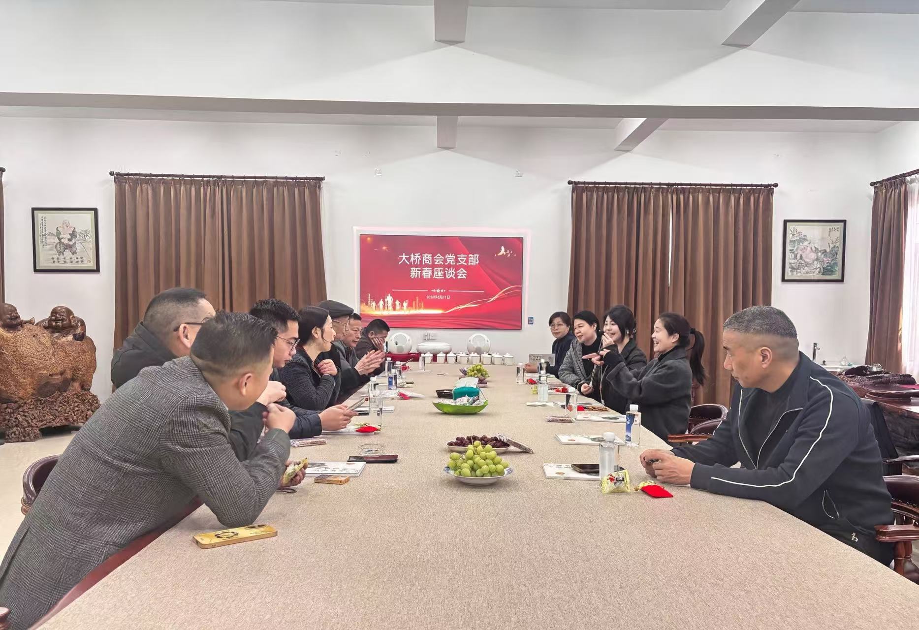 薪火相传 初心弥坚 ——大桥商会党支部新春慰问老书记何仁善 朱甜甜 马宜奋 “何书记,我们又来看您了!”3月11日上午,一声熟悉的问候,在弥勒博物馆内温暖响起。大桥商会党支部书记孙亚惠带领党员们如期而至,赴这场已延续四年的温情之约。 屋内暖意融融,何仁善老书记早早备好水果茶点,精神矍铄地站在门口,迎接这群熟悉的“家里人”。大家围坐一起闲话家常,党员们关切地询问老书记的身体状况,叮嘱他保重身体。茶香氤氲中,大家你一言我一语地讨论起今年党支部的工作计划和活动安排:如何更好服务会员企业、怎样创新志愿服务形式、帮扶活动如何落地……现场气氛热烈融洽。 “老书记是我们的‘活历史’,更是我们的精神灯塔。”孙书记感慨道,“每一次慰问,都是一次精神的洗礼、初心的叩问。老书记的经验和智慧,更是我们宝贵的财富。”何书记摆摆手,目光中满是期许。他勉励年轻党员,要锚定服务初心,将党建与商会发展深度融合,以扎根企业的实干,彰显党员担当的本色。话语朴实,如春风化雨,浸润人心。 岁月不语,躬身作答。何书记用几十年的坚守,诠释了一名老党员的责任与担当。党员们将这份感动沉淀于心,化作前行的力量——以老书记为榜样,坚守初心使命,涵养实干笃行的精神品格。 四载相约,初心如一。这场延续多年的新春慰问,已成为党支部传承奋斗精神的重要仪式。2026年,大桥商会党支部将继续以“党建引领、服务发展”为核心,让红色薪火在服务会员、回报社会的实践中生生不息。