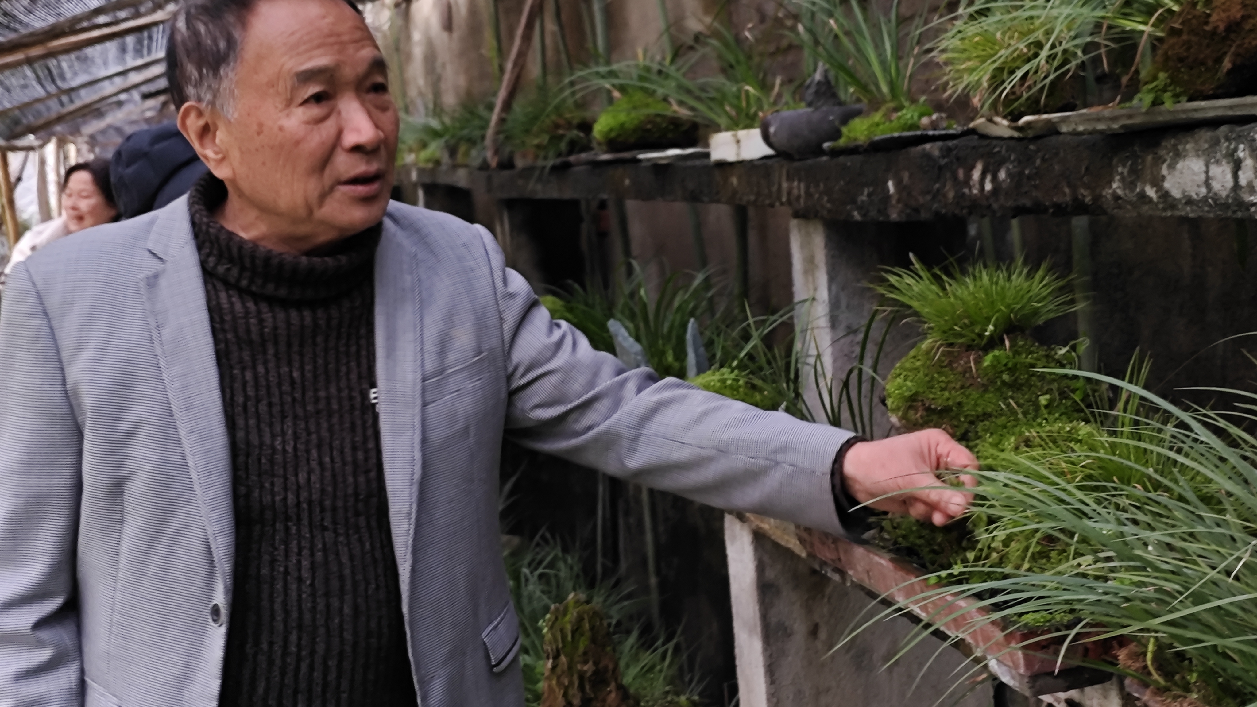 沈运旭老人十七年匠心独运 打造奉化最大石菖蒲盆景园 马宜奋 3月5日,岳林街道圆锋路上的一处盆景园内绿意盎然,园主沈运旭正热情地向访客们分享他种植石菖蒲的宝贵经验,现场不时响起阵阵赞叹声。 今年74岁的沈运旭是奉化书法家协会老年分会会长,平日里以书法修身养性。谈及与石菖蒲的缘分,老人回忆道,十七年前一位友人赠送了一盆石菖蒲,他偶然一闻,顿觉神清气爽。深入了解后得知,石菖蒲位列"四大雅草"之一,既是名贵中药材,更是古时文人墨客案头清供的雅物。"石菖蒲不仅姿态雅致、飘逸潇洒,更有提神醒脑之效,困倦时取一叶轻嗅,清香扑鼻,精神为之一振。"沈运旭介绍道。 退休后的沈运旭为丰富生活、陶冶情操,决定投身石菖蒲种植事业。创业初期困难重重:石菖蒲需精心管理,定期修剪、除草、浇水,工作量不小。老人自有妙招——外出时留意收集石头、树根等材料制作盆景;早晚抽时间打理;更安装了自动定时喷水装置,每日喷洒三到五次。凭着这份执着与巧思,他逐步攻克难关,种植规模从最初的寥寥数盆发展到如今的200多盆,三四个精品,成为奉化地区规模最大、品质最优的石菖蒲种植大户。 随着名气日隆,众多书画爱好者慕名而来,沈运旭也时常将精心培育的盆景赠予志同道合的朋友。面对热心人士提出的举办石菖蒲盆景展的建议,老人表示:"目前盆景的艺术水准还需精进,加之办展需要一定经费支持,待时机成熟,一定让大家一饱眼福。" 从书法案头到盆景园中,沈运旭用十七年的坚守,将退休生活过出了诗意与雅致,也为传统文化的传承写下了一段生动的注脚。