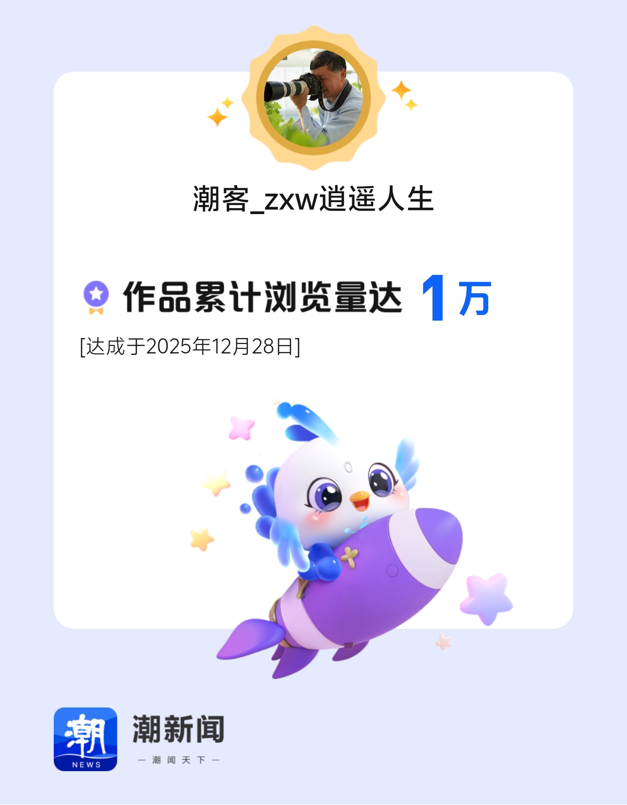 我在潮新闻发表的作品累积浏览量突破1万!