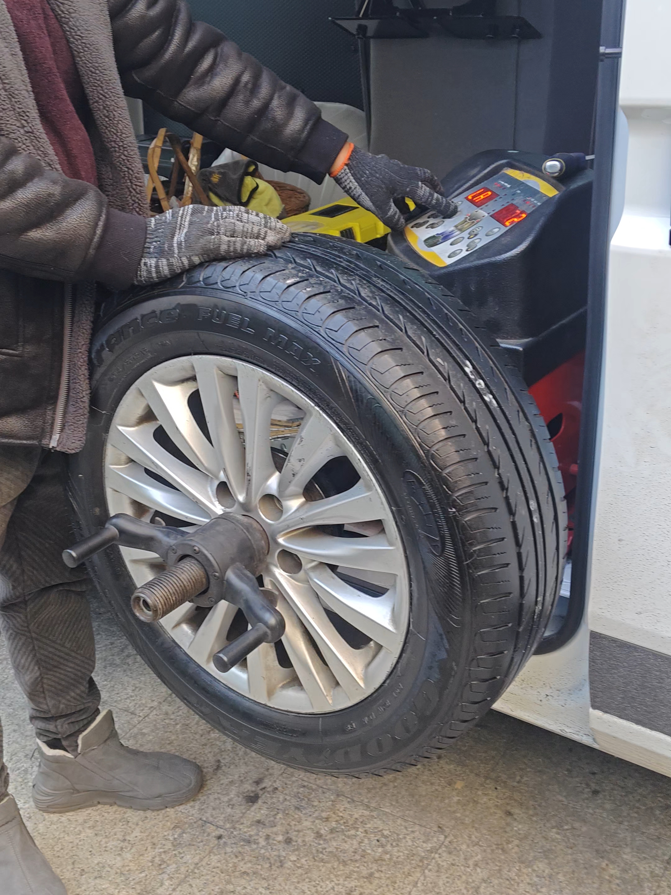 看师傅给汽车轮胎动平衡想到人生亦需要动平衡才能致远一路顺风。