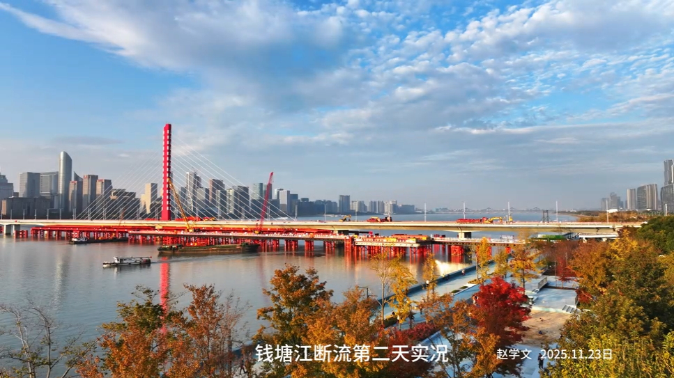 钱塘江三桥断流拆除重建第二天视频赵学文拍摄