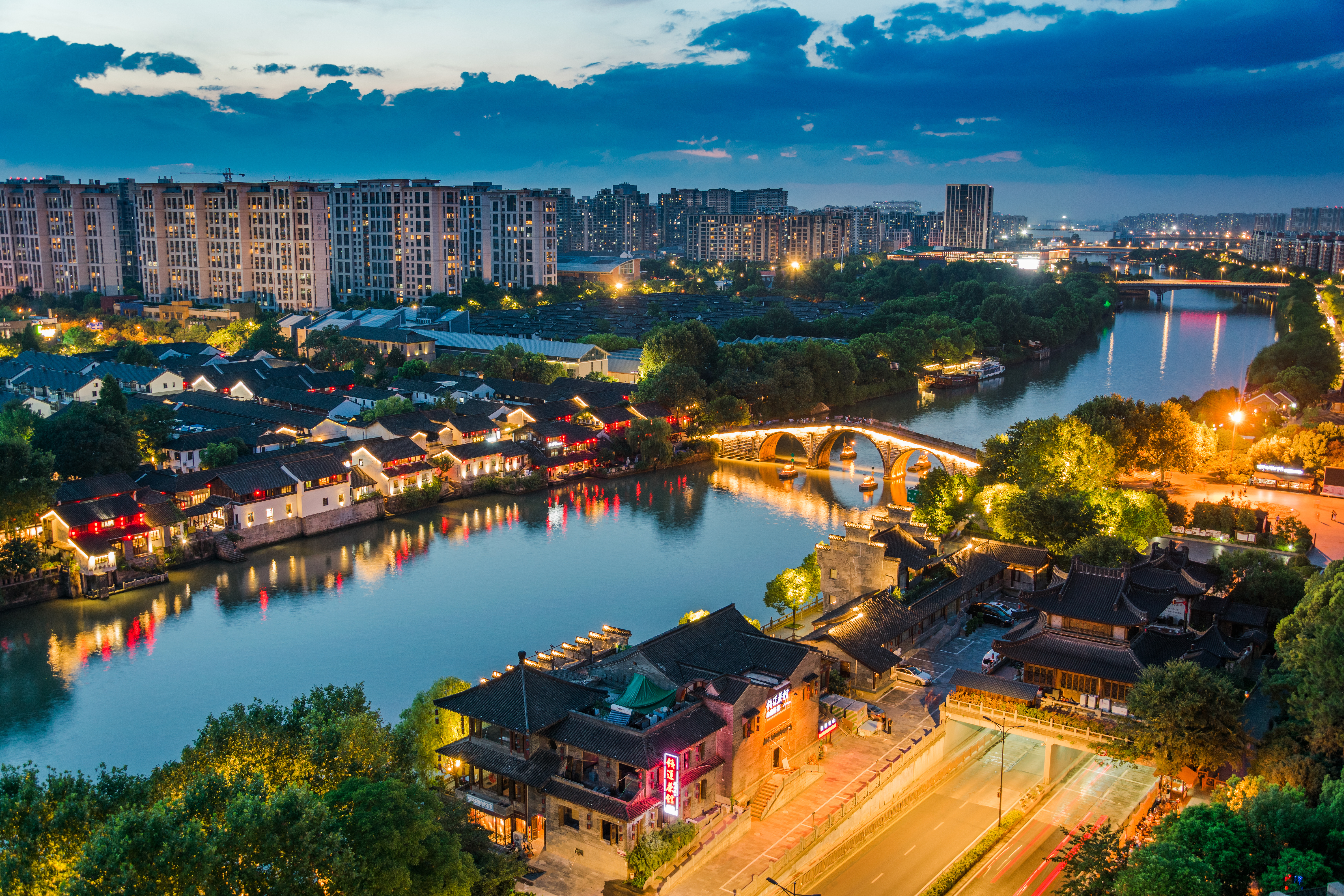 《大运河入夜》 作者:朱露翔 拍摄地点:杭州拱宸桥 繁忙的大运河,在夜幕降临后归于平静。