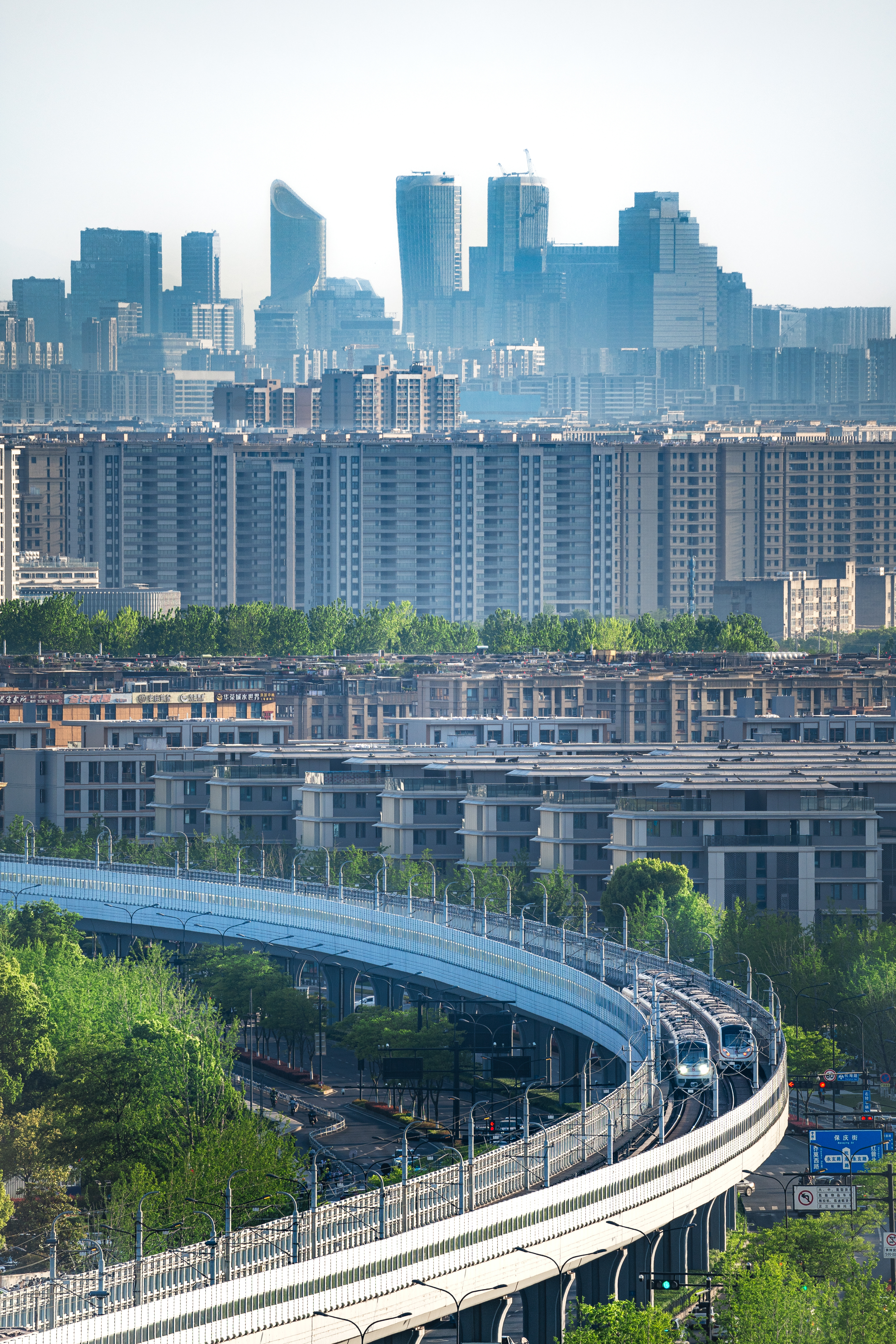 《进城之路》 作者:朱露翔 拍摄地点:杭州市临平区 远处钱江新城高楼大厦林立,近处杭州地铁9号线交通繁忙,交织出了一幅生动的都市生活画卷。