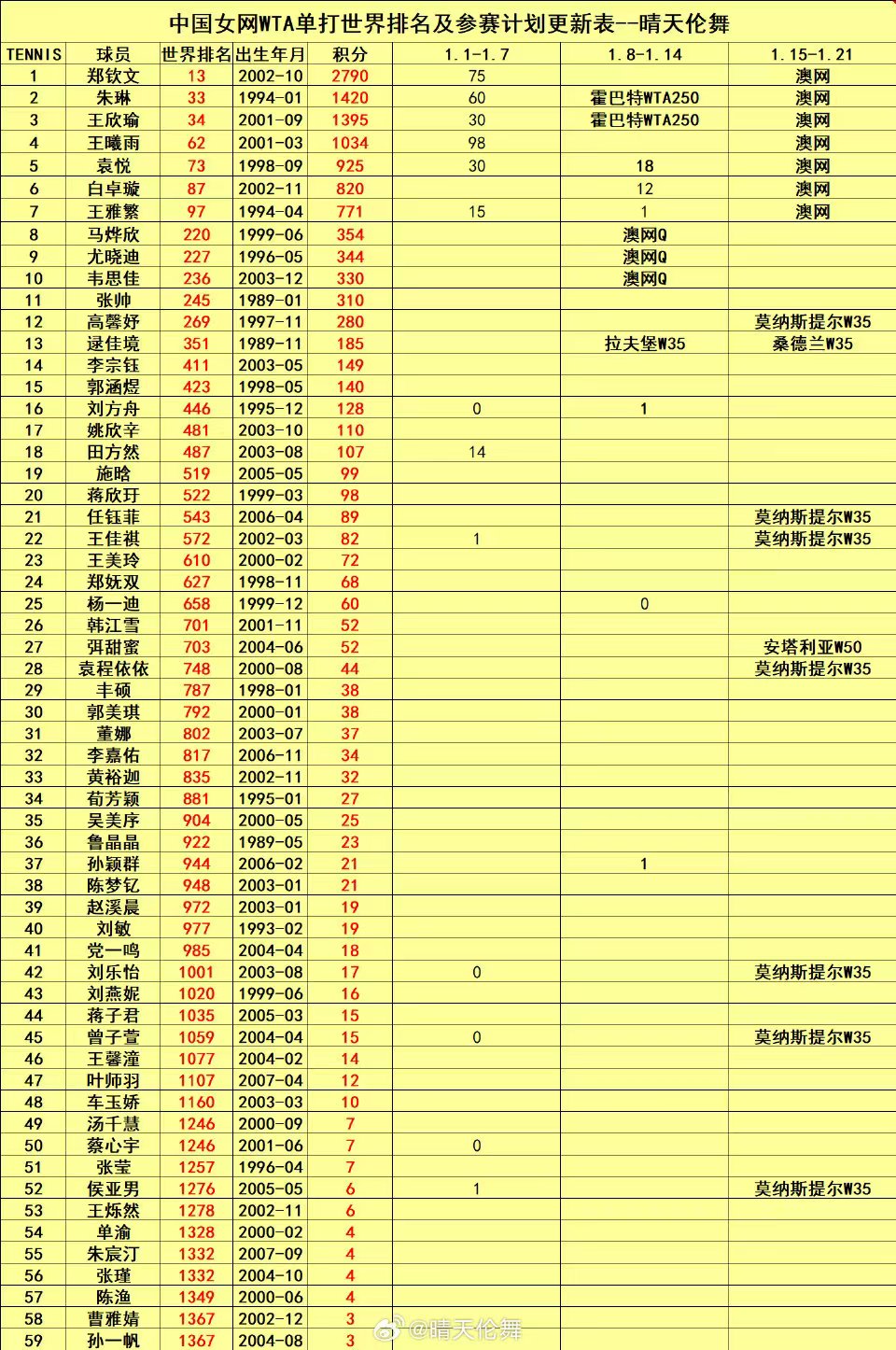 浙大附中高一14班朱宸汀网球特长生已经进入成年女子单打世界排名了!加油!