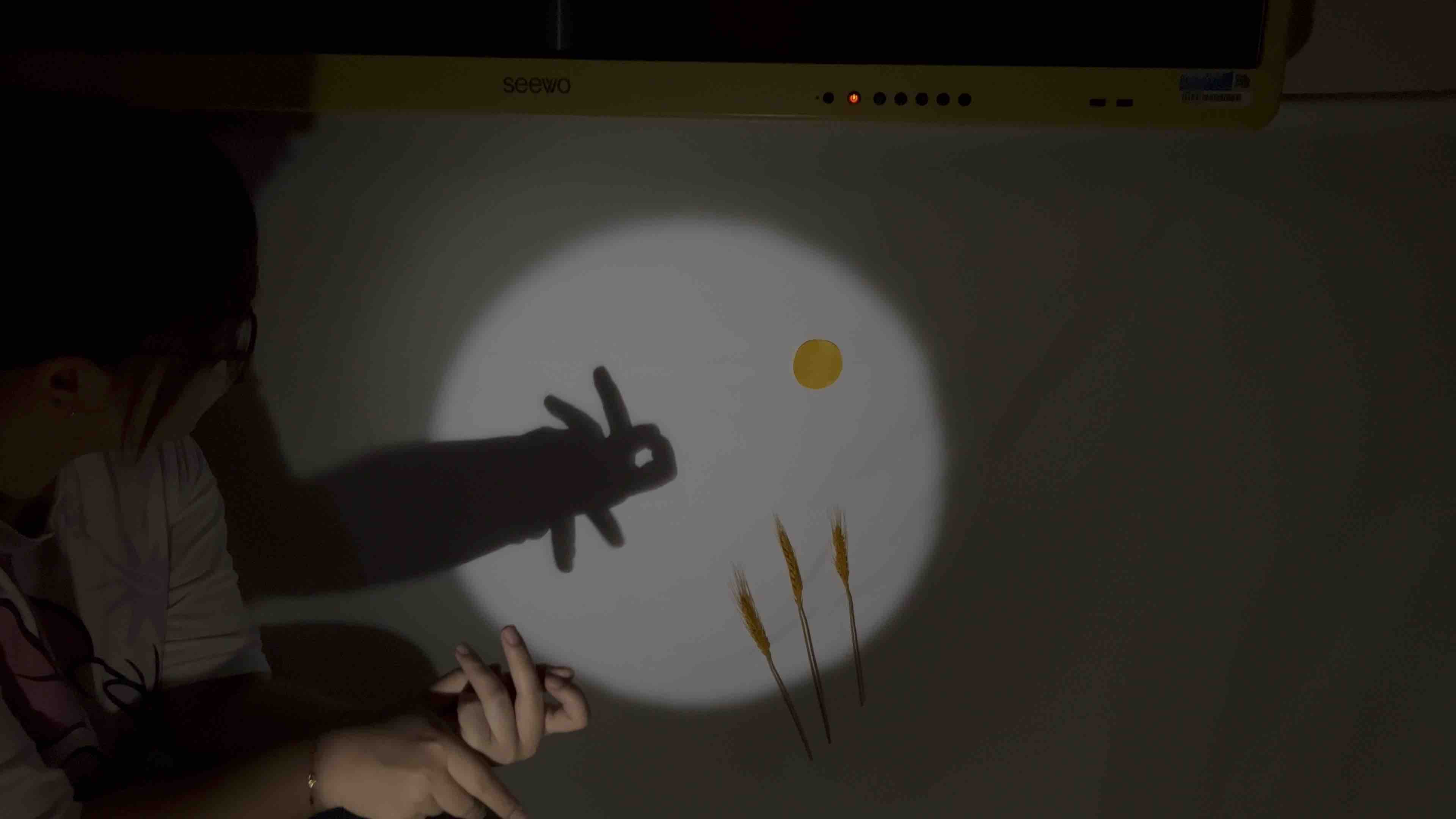 杭州市绿洲花园幼儿园的老师们带着孩子们一起做有关中秋的有趣皮影游戏,幕布上的小兔子跃然而动。