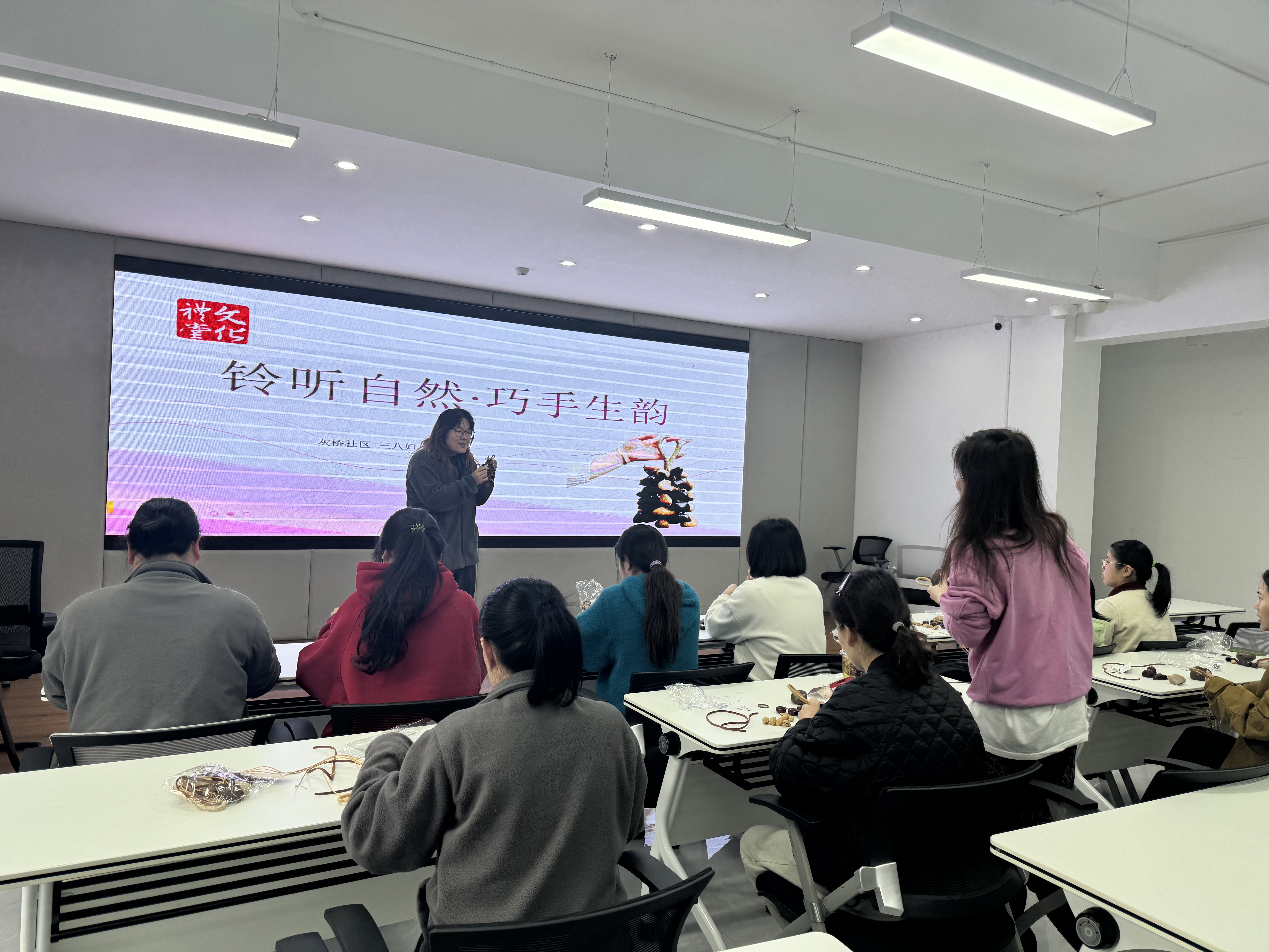 灰桥社区三八妇女节开展“铃听自然 巧手生韵”活动 阳春三月,万物焕新。在第114个“三八”国际妇女节来临之际,灰桥社区以“铃听自然 巧手生韵”为主题,组织辖区妇女开展果壳风铃创意制作活动,通过将自然元素与手工艺术结合,展现新时代女性智慧与创造力,传递绿色生活理念。 活动现场,社区精心准备了开心果壳、核桃壳、松子壳等天然材料,以及麻绳、彩线、铃铛等装饰配件。在工作人员的指导下,参与者们充分发挥想象力,搭配麻绳编织的流苏与金属铃铛,制作出兼具自然质朴与灵动美感的果壳风铃。核桃壳化作古朴的钟摆,开心果壳串成层叠的帘幕,松子壳点缀成星芒……每一件作品都承载着对自然的敬意与对美的追求。参与者张女士感慨:“没想到平时丢弃的果壳能变成这么美的艺术品,这个妇女节过得特别有意义!” 春风十里,不如巾帼风采;巧手千般,尽显时代担当。灰桥社区以果壳风铃为媒,让妇女同胞在创作中感受艺术魅力,在协作中增进邻里情谊,更以实际行动践行绿色发展理念,为美好社区建设注入温暖而坚韧的“她力量”。